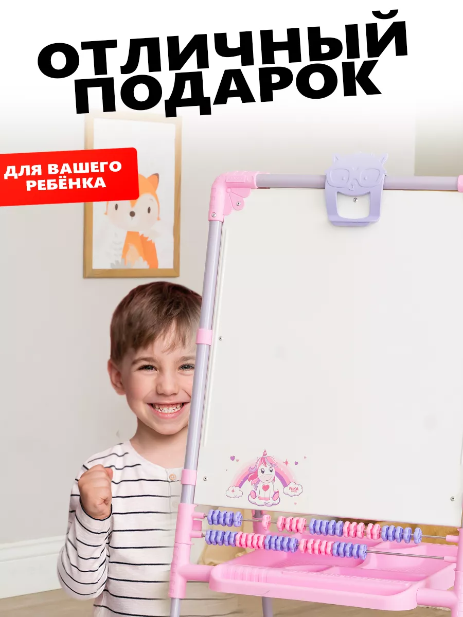 Комплектация мольберт детский двусторонний-1шт; пенал для хранения мелков и маркеров-1шт; зажим для крепления бумажных листов-1шт