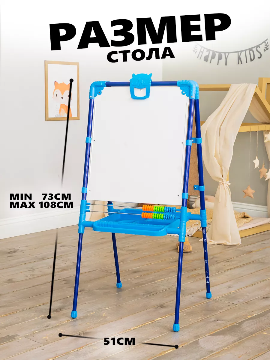 Комплектация мольберт детский двусторонний-1шт; пенал для хранения мелков и маркеров-1шт; зажим для крепления бумажных листов-1шт