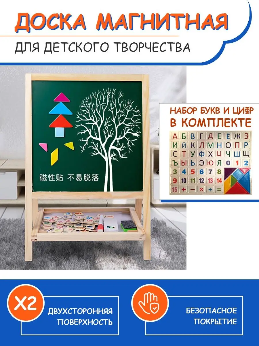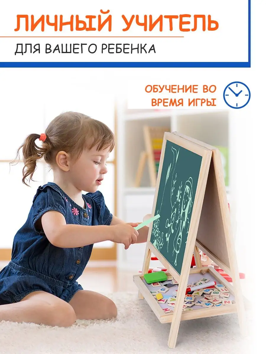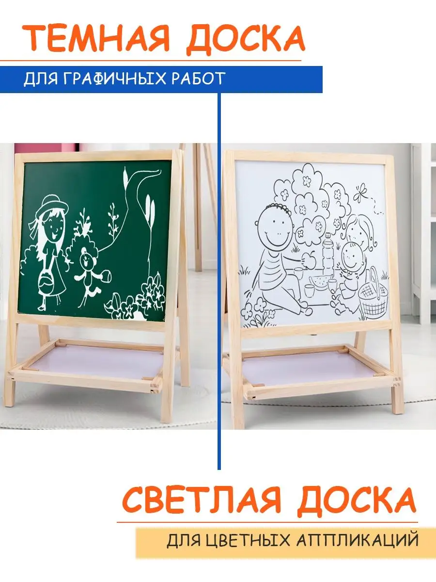 Доска для рисования мольберт двусторонний магнитная детская