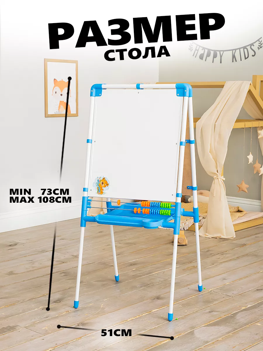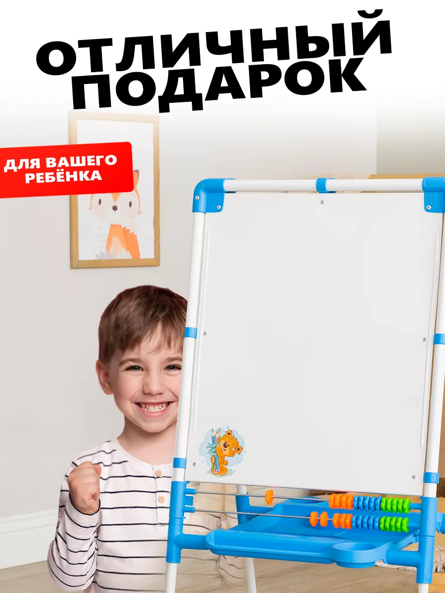 Комплектация мольберт детский двусторонний-1шт; пенал для хранения мелков и маркеров-1шт; зажим для крепления бумажных листов-1шт