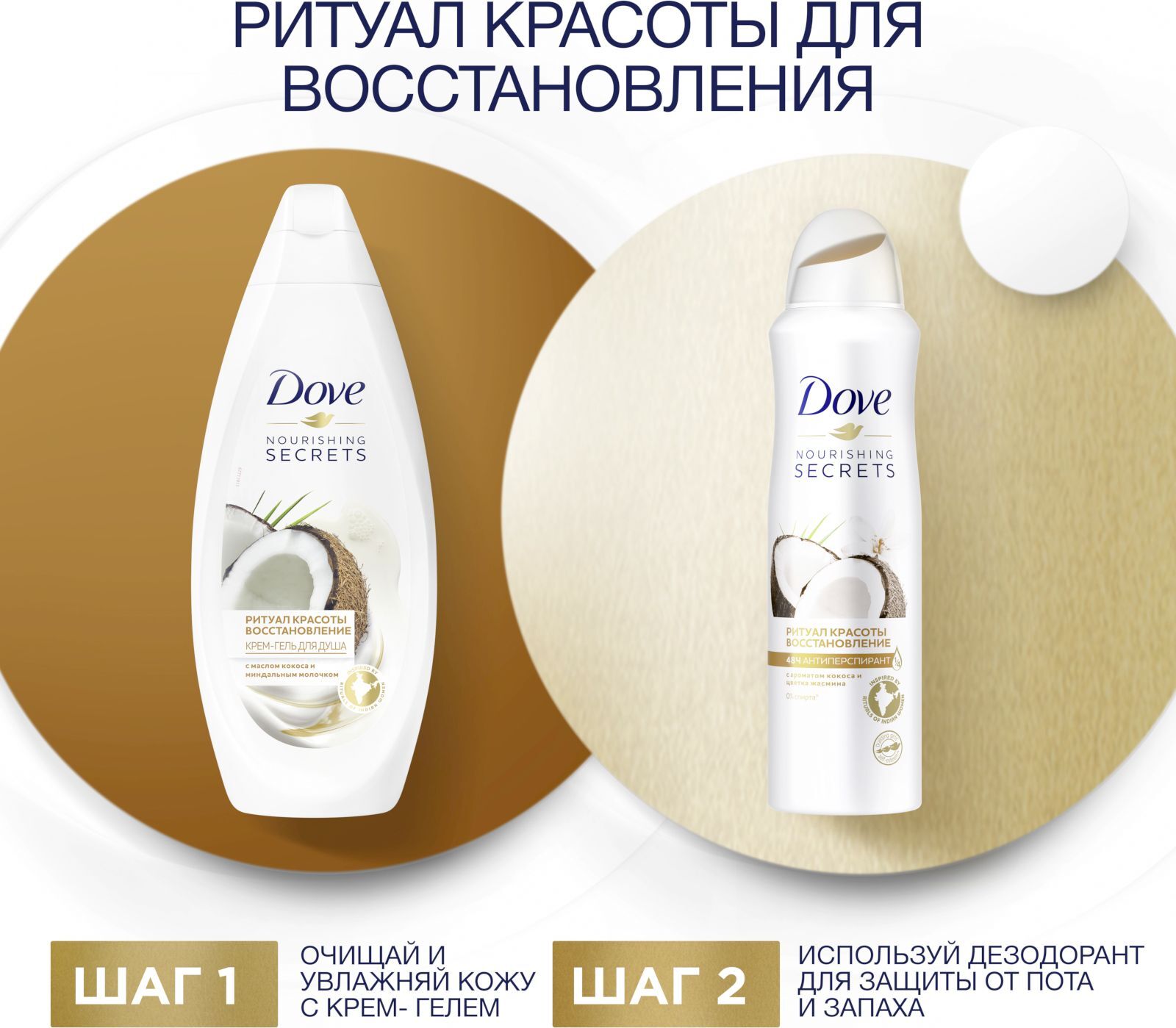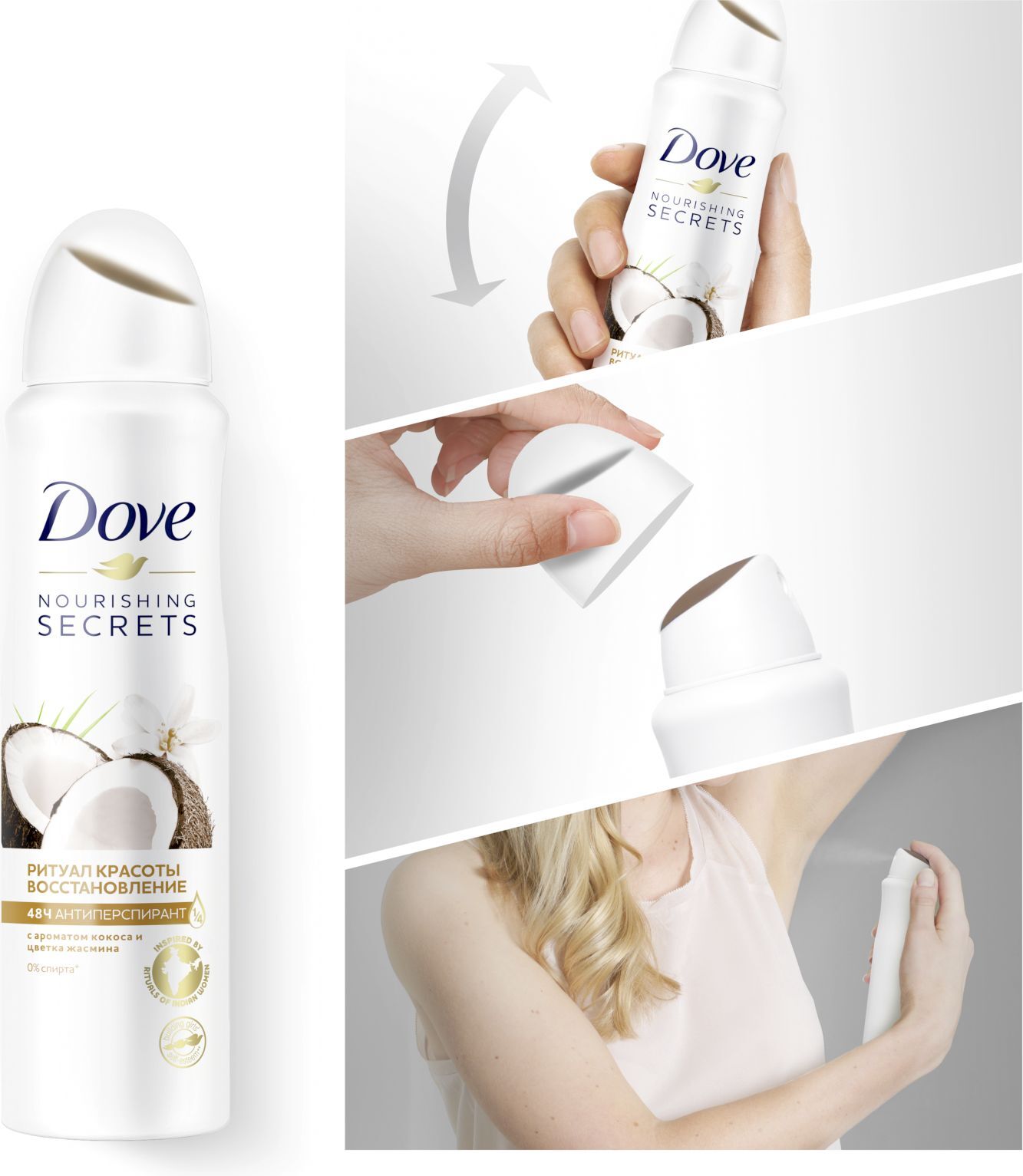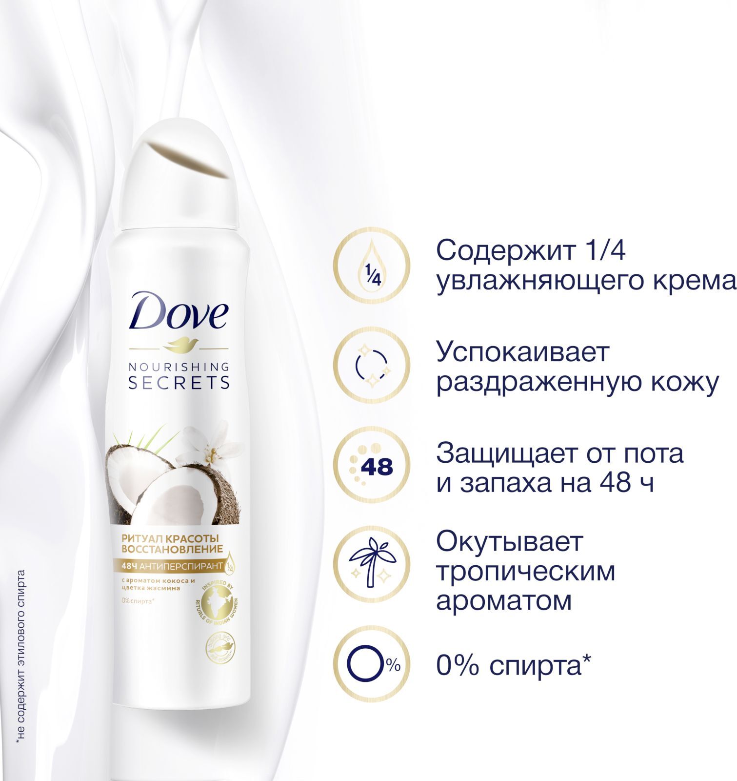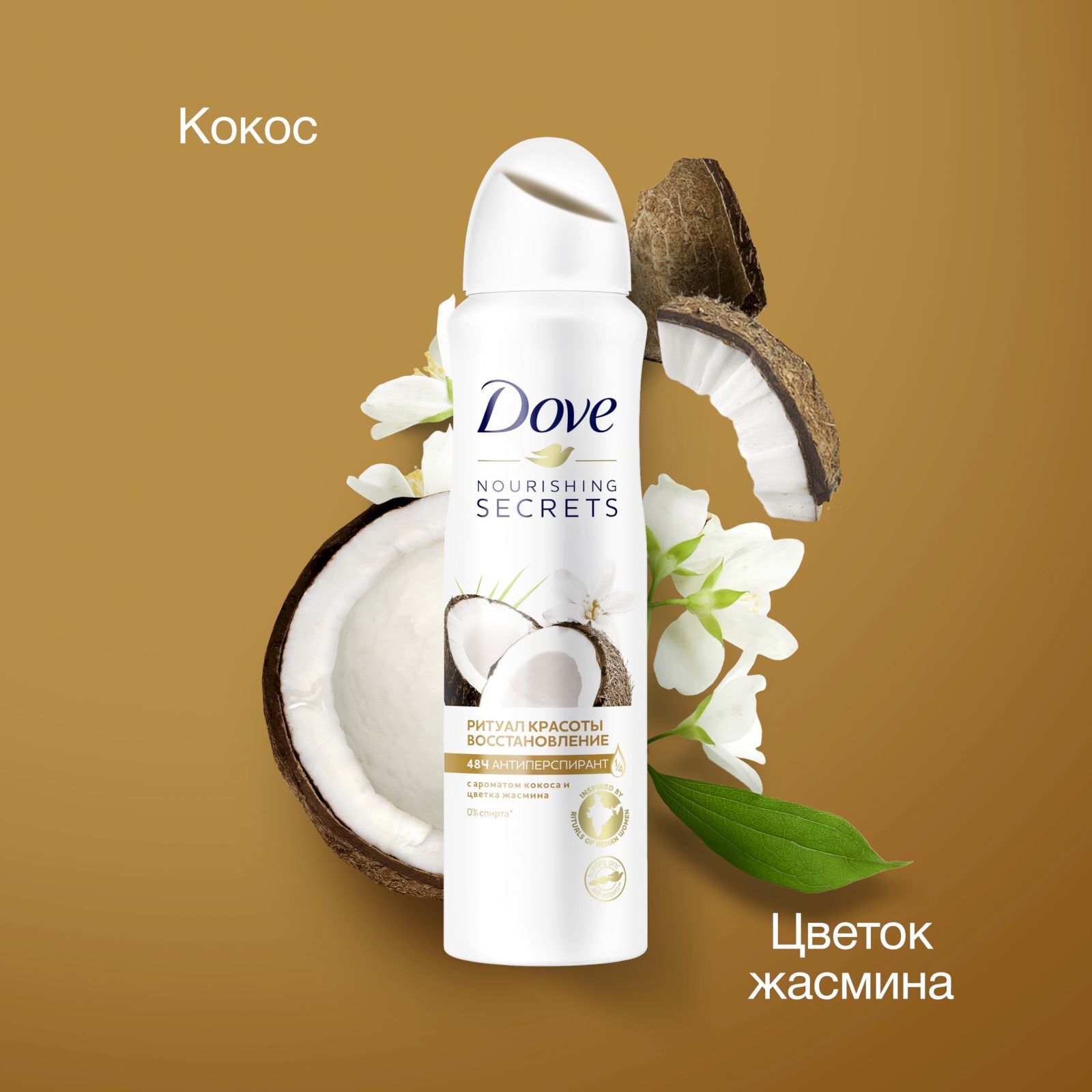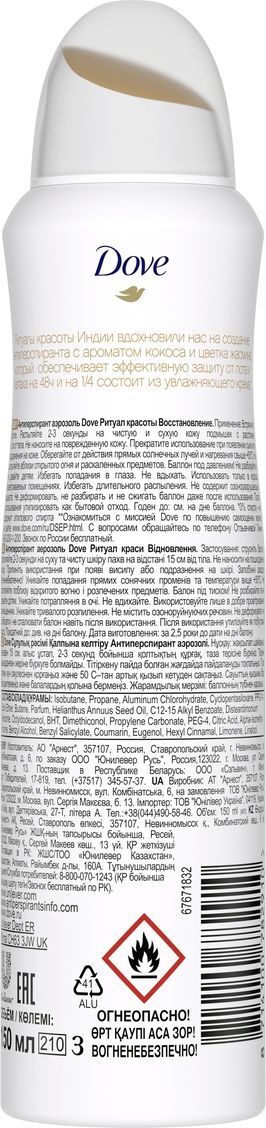 DOVE антиперспирант-дезодорант аэрозоль Ритуал красоты Восстановление с кокосом и цветком жасмина 150 мл