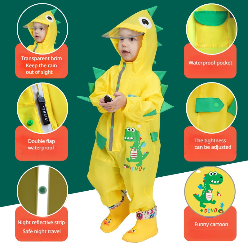 Дождевик детский, пончо для начальной школы, дождевик с динозавром, детский дождевик, накидка