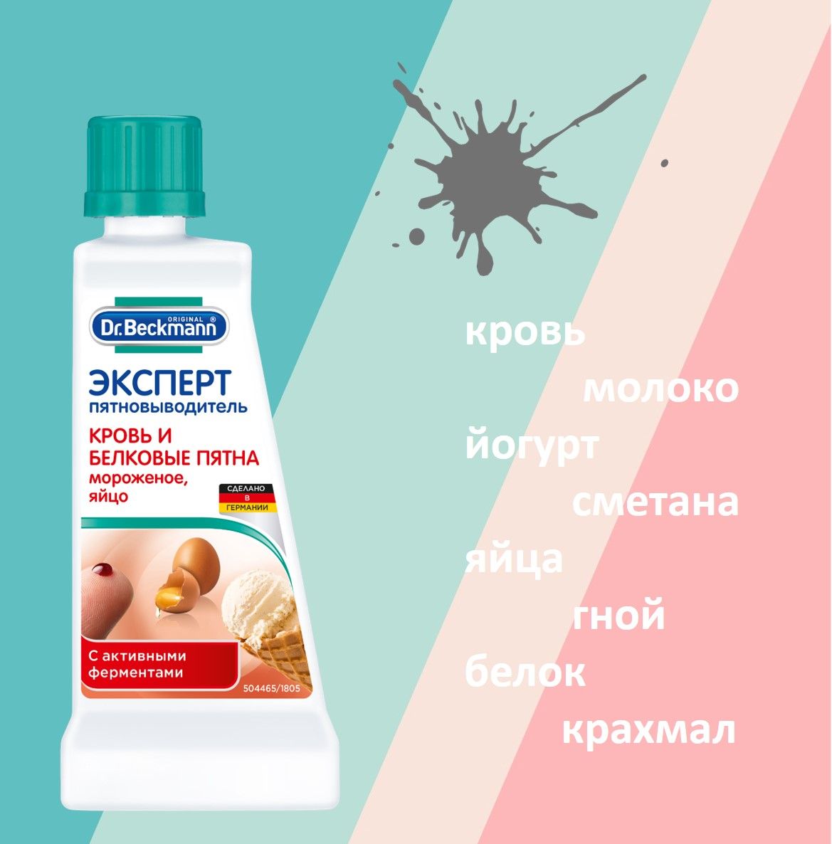 Идеально подходит для пятен: крови, консервированного молока, яиц, яичного ликера, яичных блюд, мороженого, гноя, йогурта, молока, пудинга, творога, сметаны, слюны, спермы, крахмала, цацики.