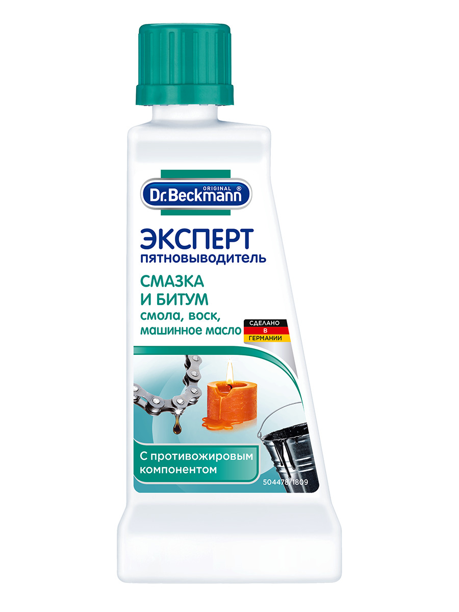 Описание: Dr.Beckmann Пятновыводитель Смазка и битум 50мл.Пятновыводитель для белья удаляет пятна моторного масла, крема для обуви, солярки, бензина, смазки, свежей масляной краски, графитной смазки, сажи, золы, краски для принтеров