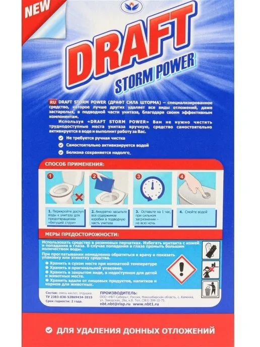 DRAFT STORM POWER Чистящее средство для унитаза для удаления донных отложений, 400 гр