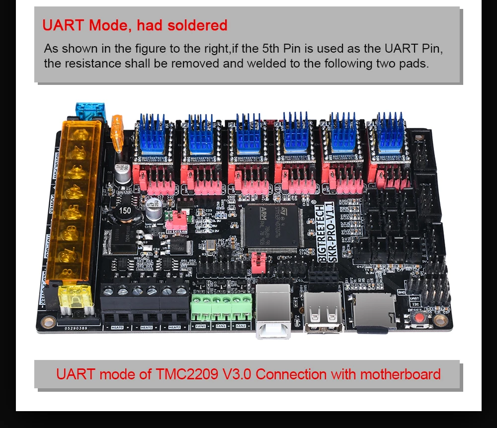 (3) Бесшумные ступенчатые стики TMC2209 можно переключать между режимами stealthChop и Spread Cycle с помощью конфигурационного контакта (SPREAD).