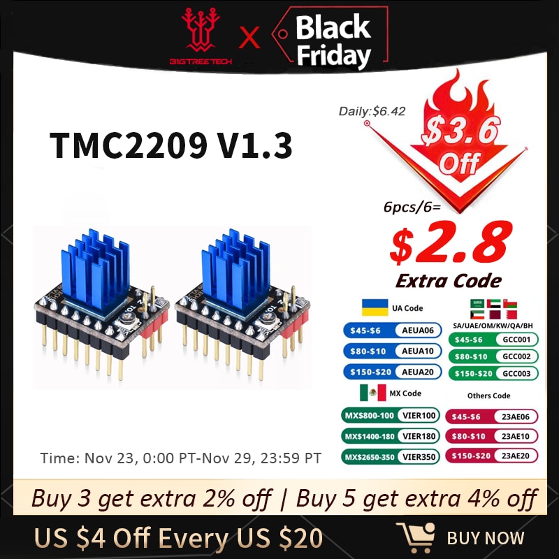 (2) Бесшумные ступенчатые палочки TMC2209 оснащены прохладным Step and Stall Guard4 (оптимизированы для stealthChop).