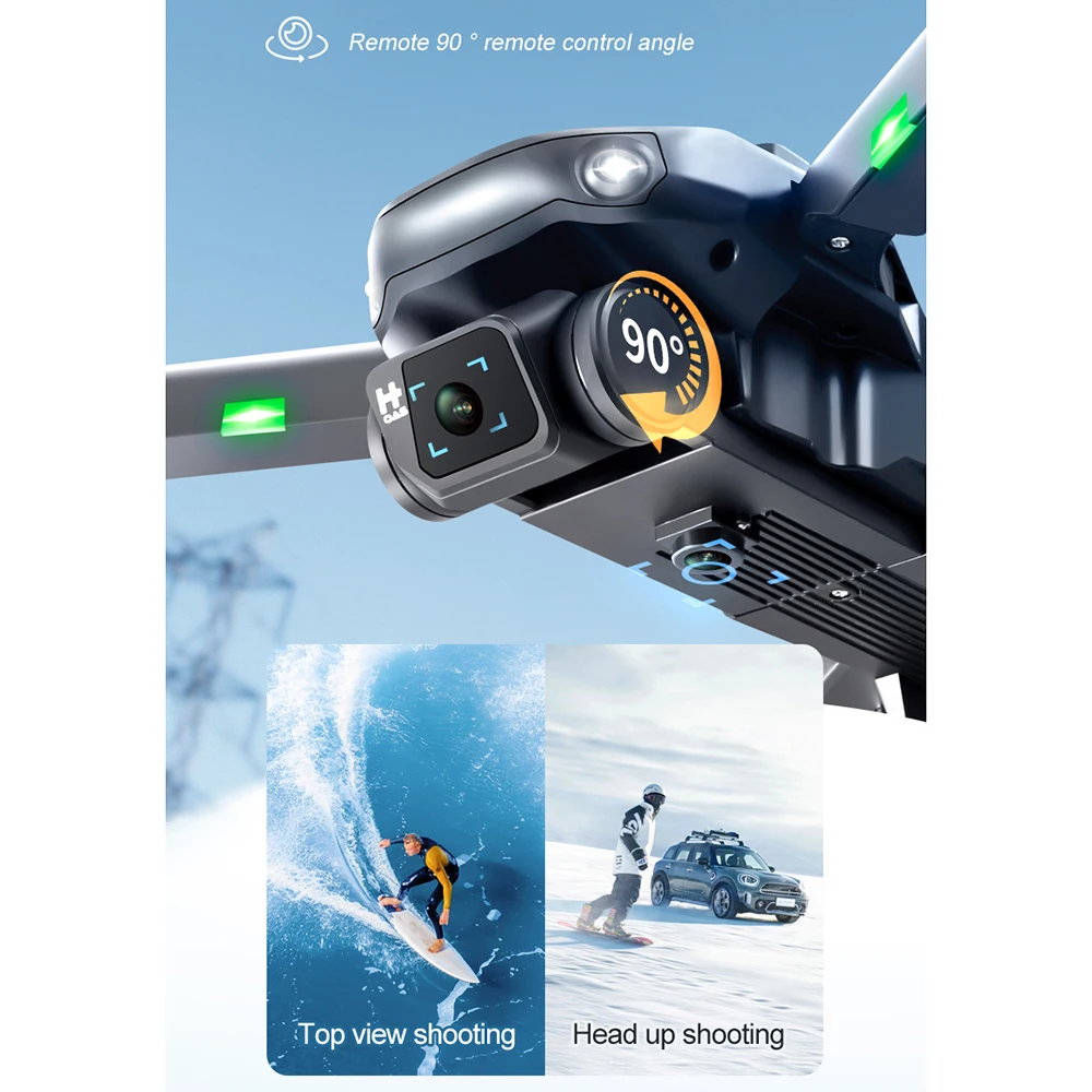 1. Передний объектив размещен с широкоугольным Wi-Fi высокой четкости 8K, нижний объектив высокой четкости с оптическим потоком может переключать угол камеры, добавлена конструкция стабилизации сервопривода панорамирования и наклона, а также добавлена электронная защита от сотрясения EIS, чтобы сделать линию фото более четкой
