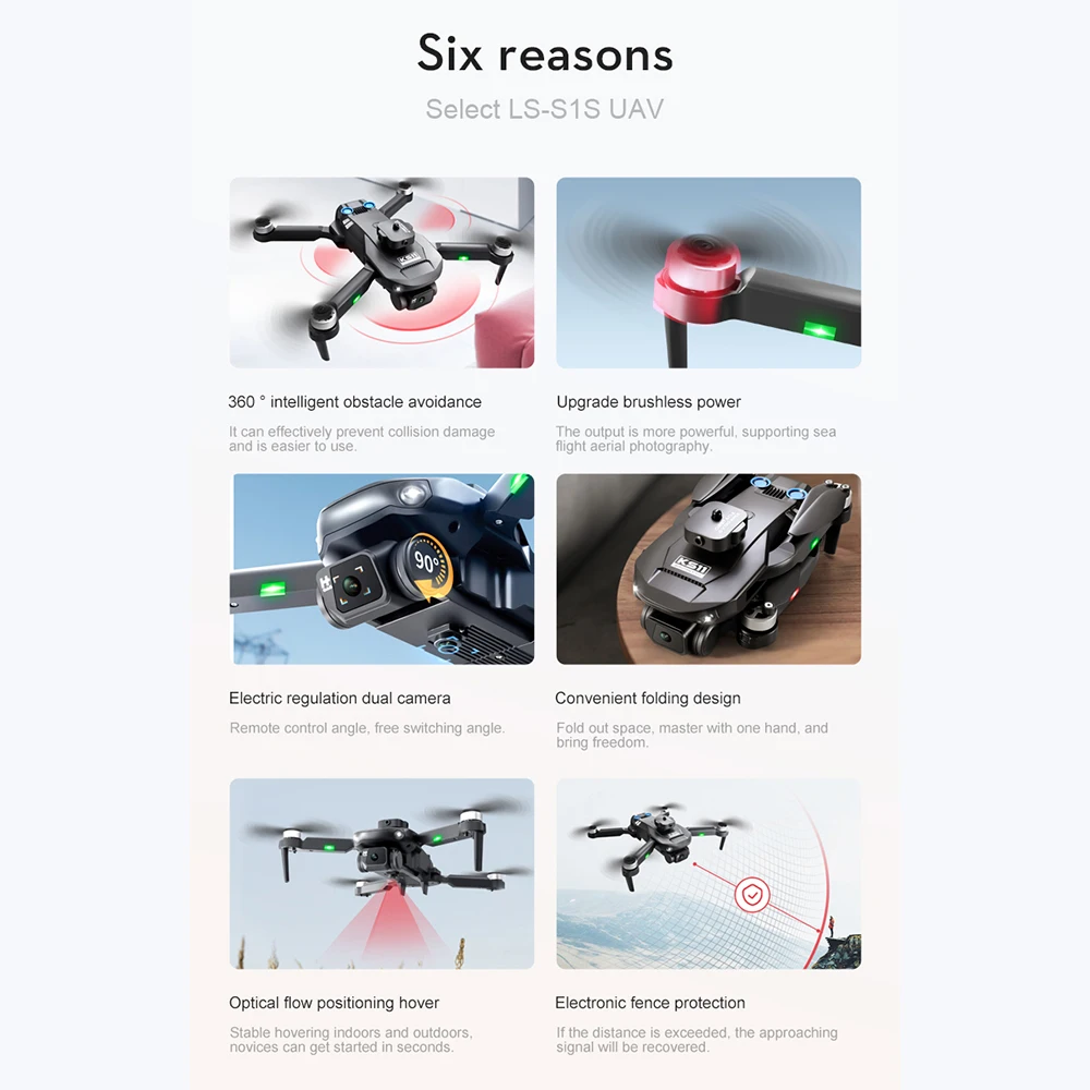 6. Фотография жестами рук, позиционирование оптического потока, бесщеточный двигатель, сверхдлительный срок службы, головка для предотвращения препятствий, может останавливаться при столкновении с препятствиями, не сталкиваясь с ними.