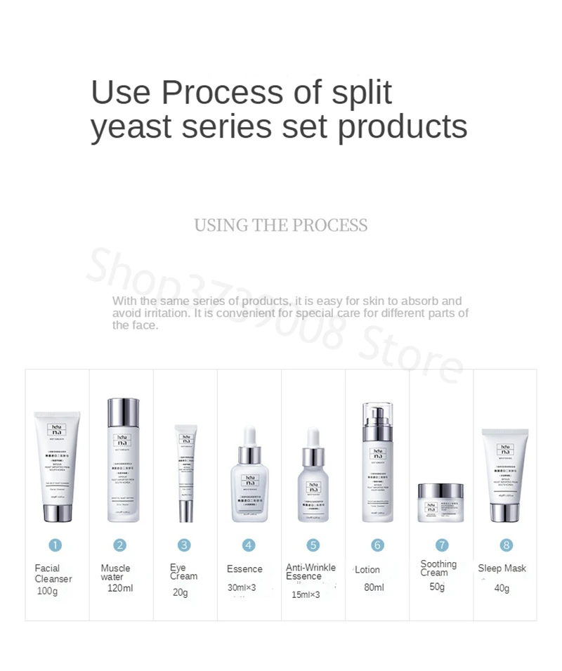1. Продукт содержит очищающее средство для лица, крем, эссенцию, тонер и т. д., чтобы обеспечить более полный уход за кожей.
