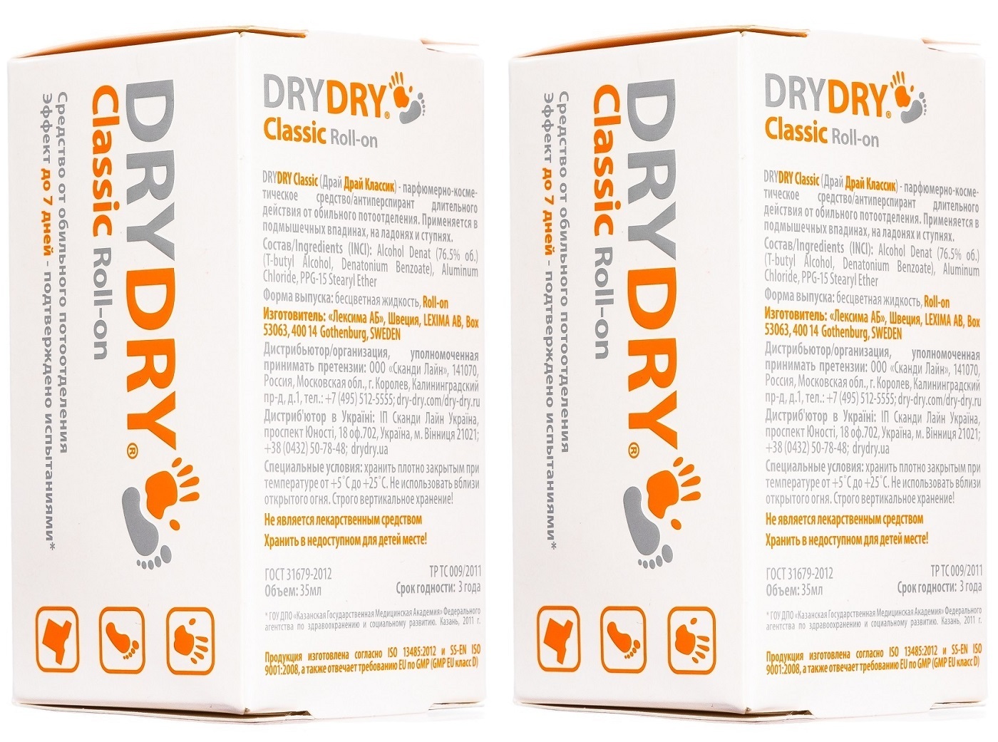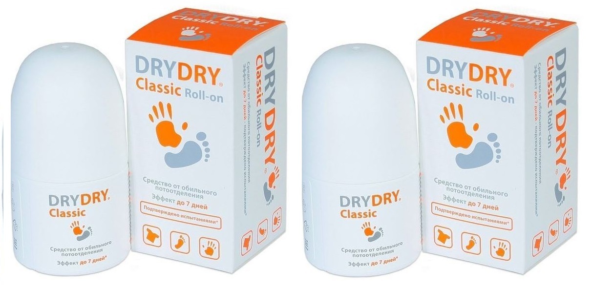 DRY DRY Classic Roll-on набор: средство от потливости подмышек и запаха / антиперспирант от повышенного потоотделения, гипергидроза для мужчин и женщин ДРАЙ ДРАЙ Классик шариковый дезодорант, 35мл 2шт