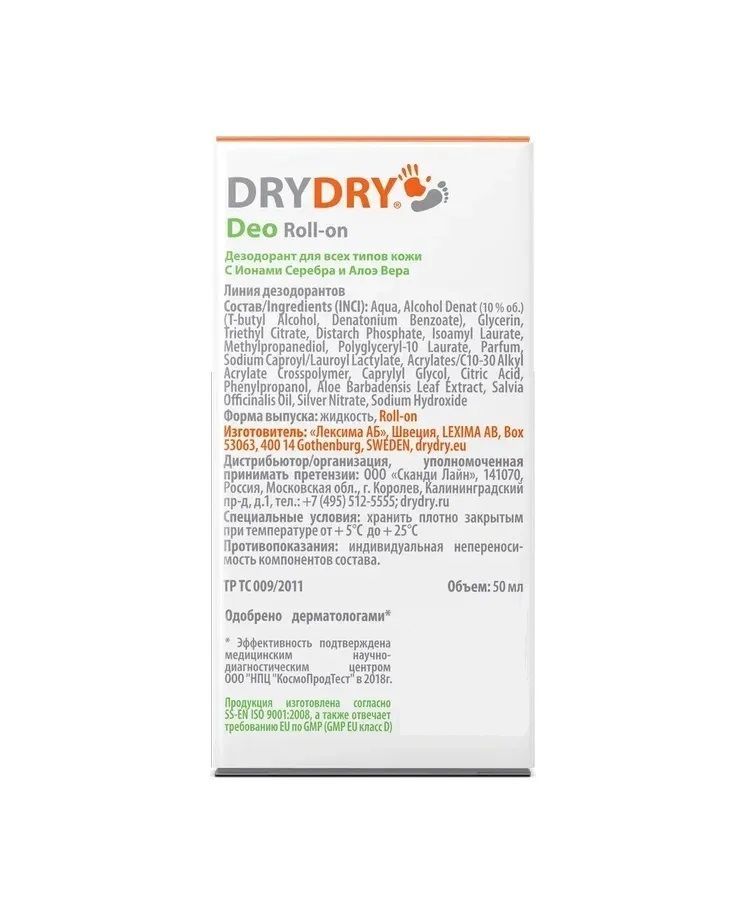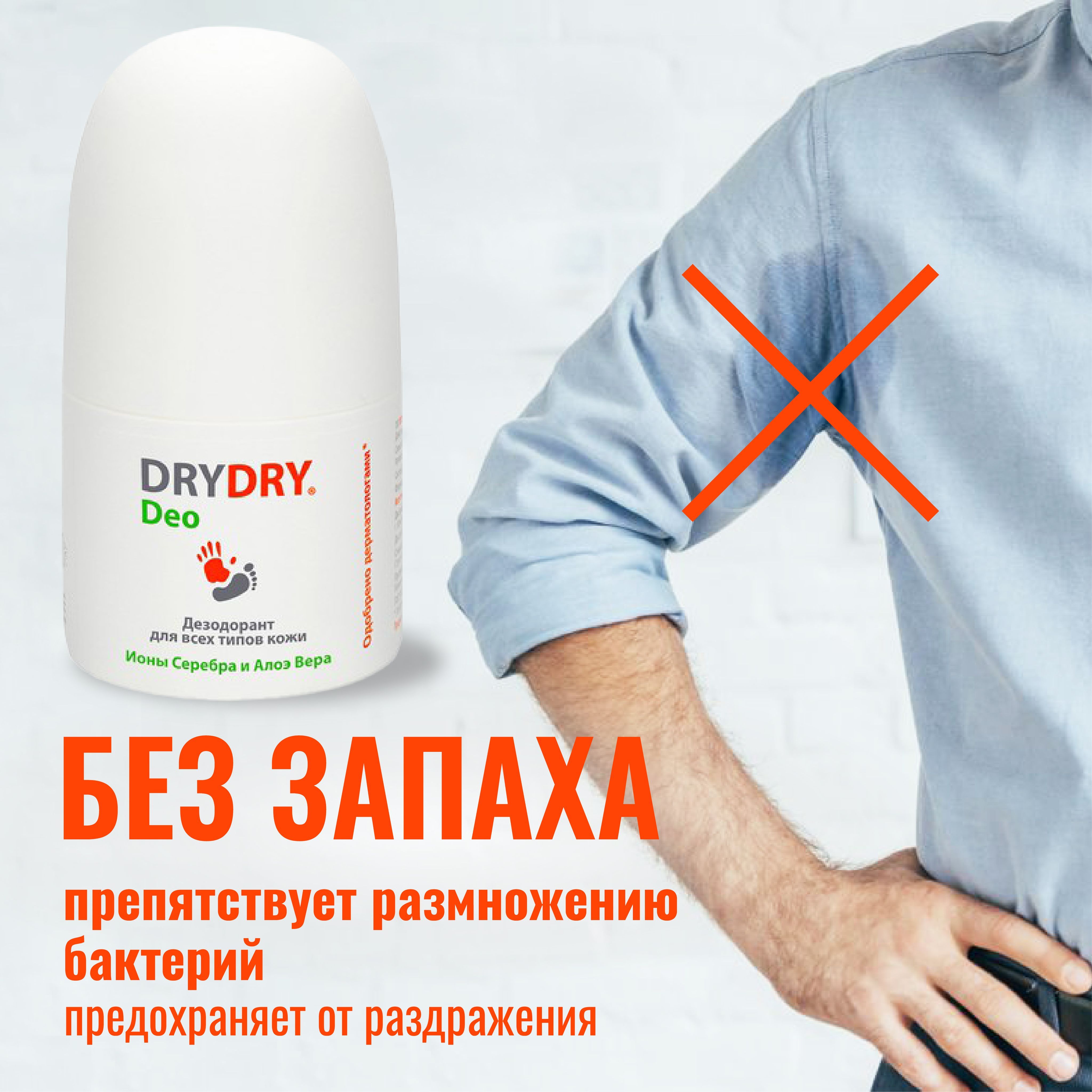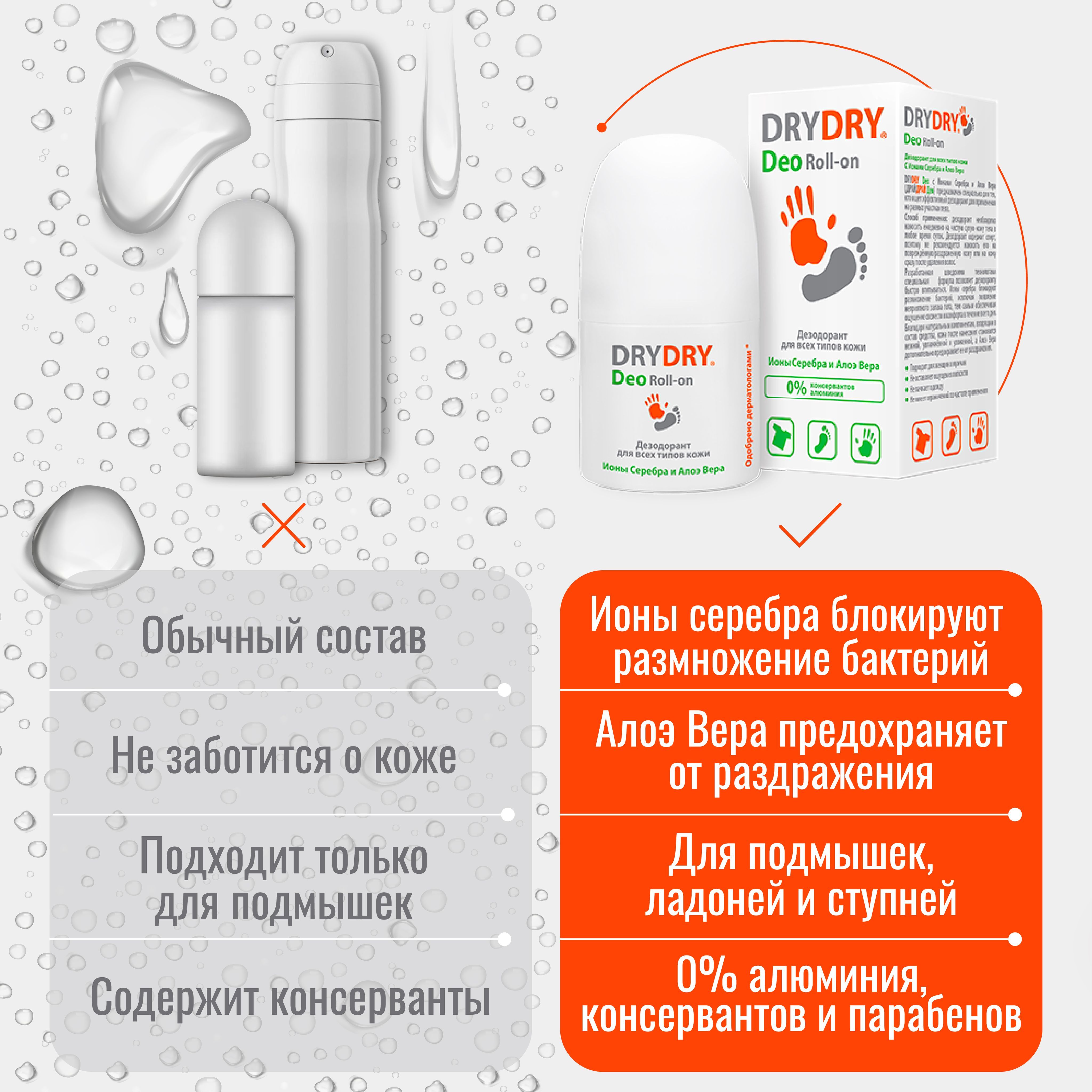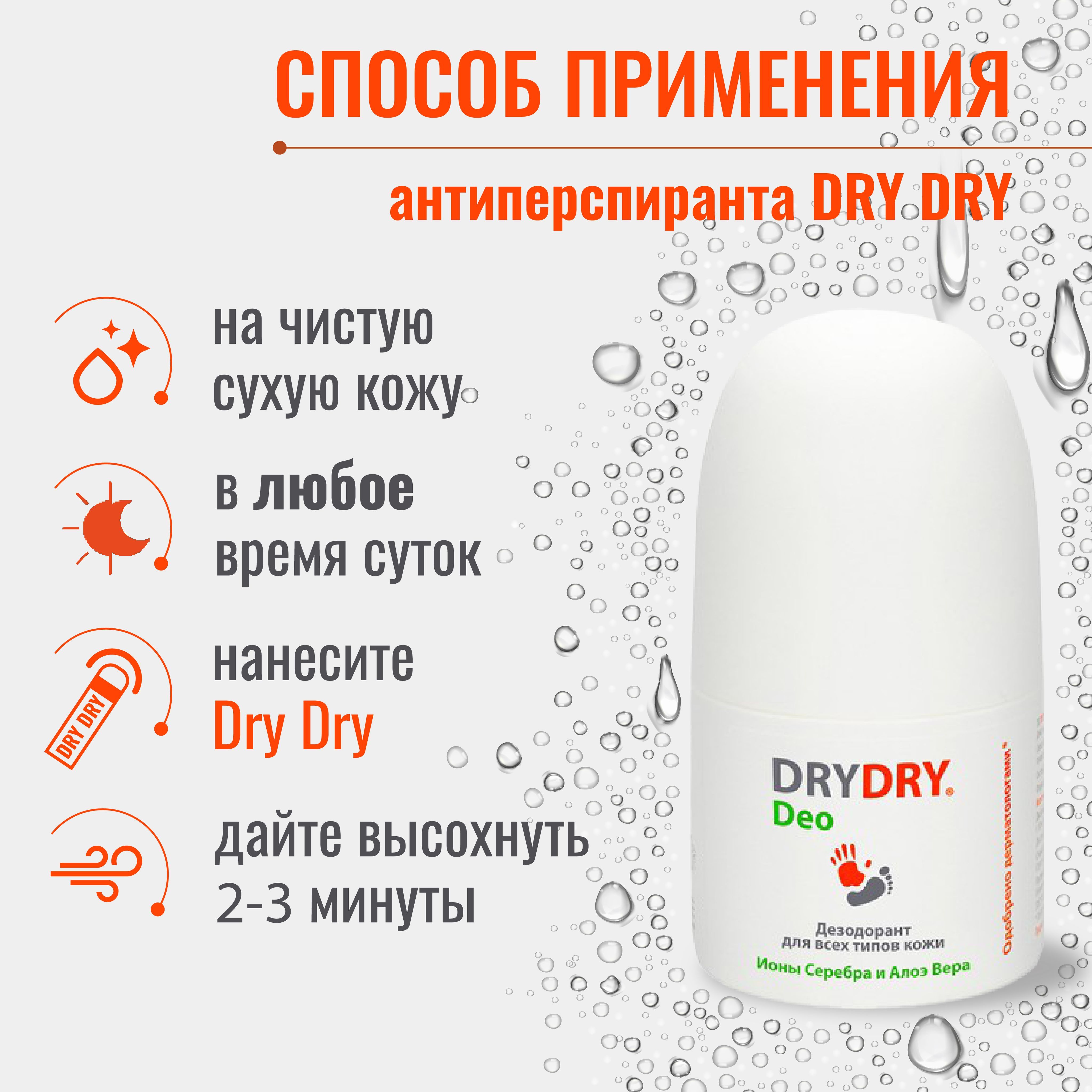 Dry Dry Deo Roll-on / Драй Драй Део роликовый дезодорант с ионами серебра и алоэ вера, антиперспирант женский и мужской, без алюминия, 50 мл.