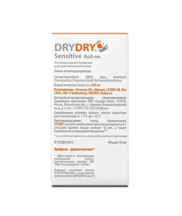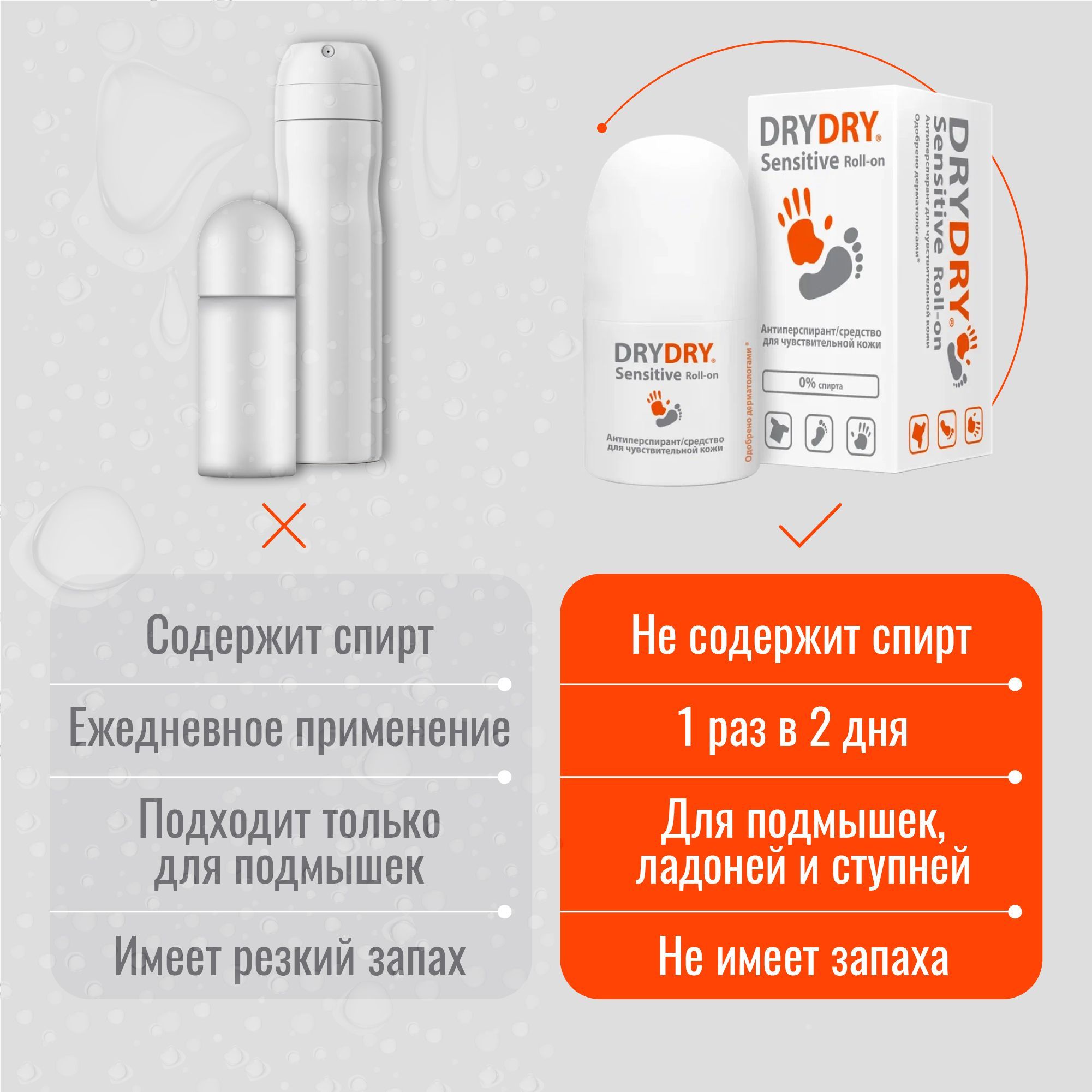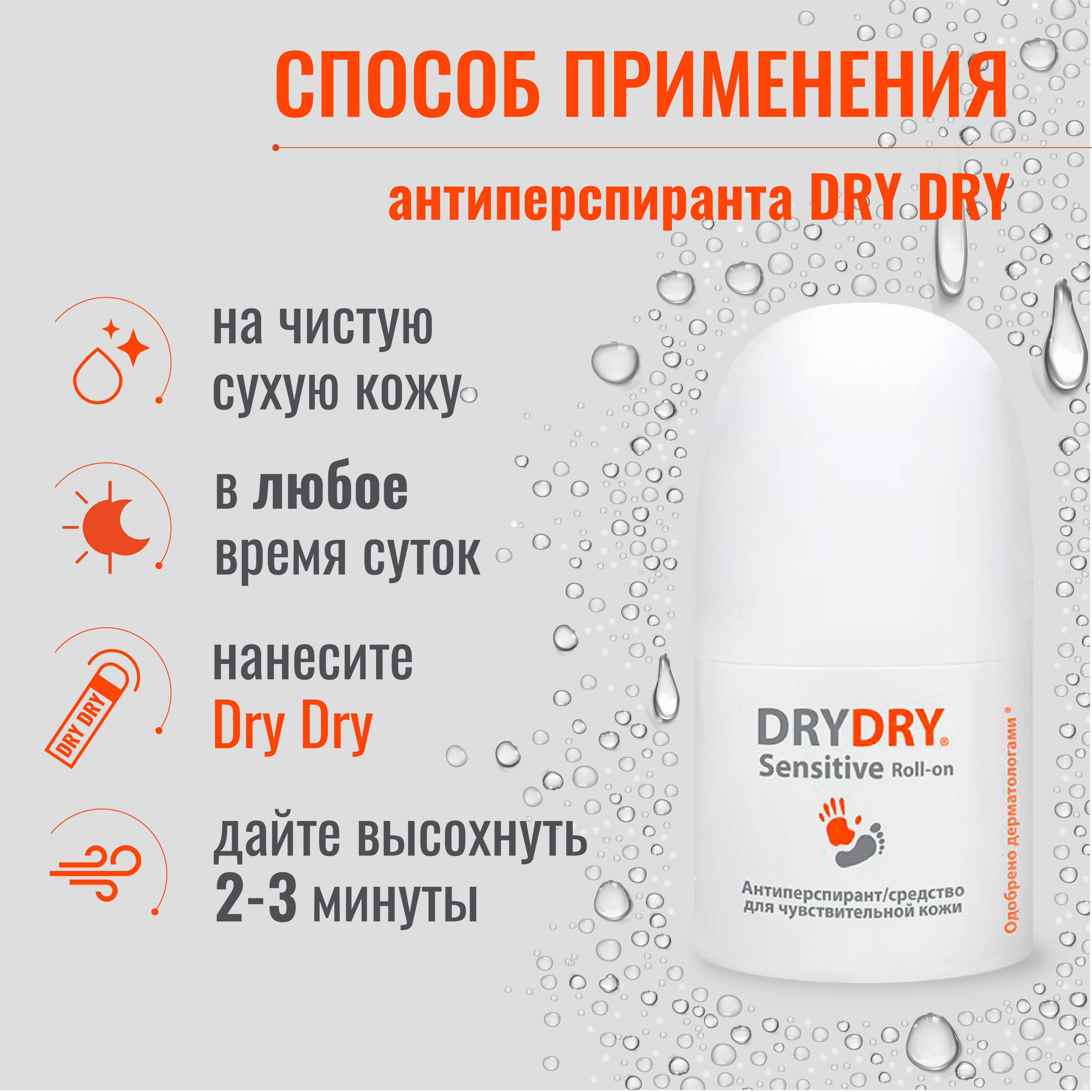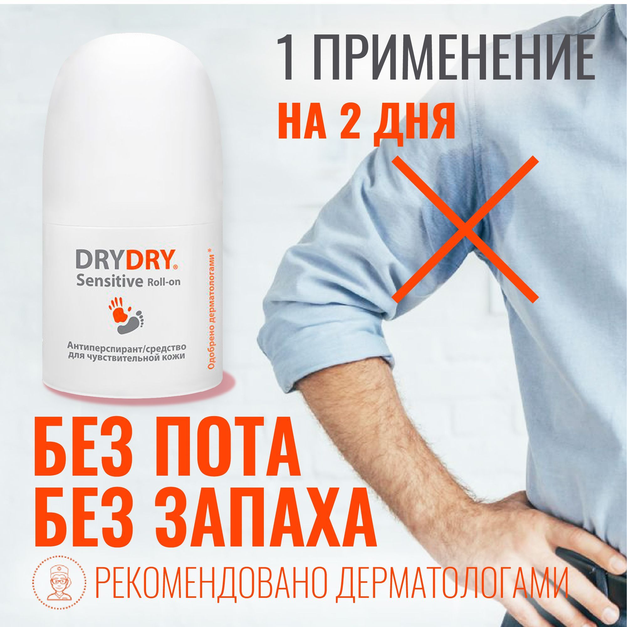 Dry Dry Sensitive / Драй Драй Сенситив шариковый антиперспирант, дезодорант для чувствительной кожи женщин и мужчин, от пота и запаха, 50 мл.