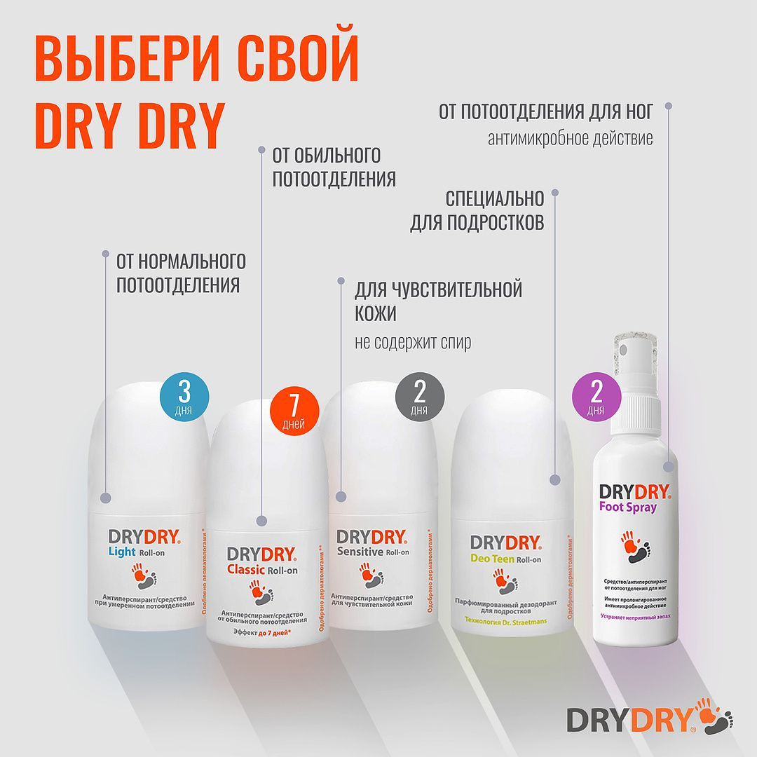 Эффективное средство от пота и запаха Dry Dry Sensitive / Драй Драй Сенситив поможет забыть о запахе пота и неприятных ощущениях даже обладателям чувствительной кожи.