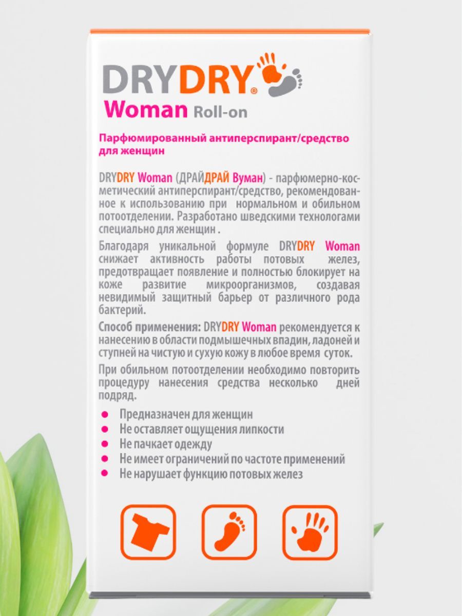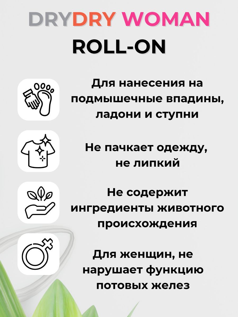 DRY DRY Woman средство от потоотделения для женщин пролонгированного действия / роликовый дезодорант от пота и запаха для подмышек, рук и ног