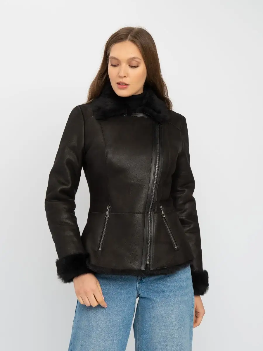 Описание: Слегка приталенная модель натуральной дубленки- это удобная, теплая и красивая зимняя верхняя одежда, которую современные девушки предпочитает классической шубке. Верх этой элегантной модели выполнена из натуральной кожи, подкладка выполнена из овечьего меха. Утепленная кожаная куртка имеет длину до бедра, приталенный крой, без капюшона, застежка - молния, манжеты отделаны натуральным мехом, отложной воротник - стойка, который можно зафиксировать в верхнем положении, 2 прорезных кармана по бокам. Зимняя куртка –косуха, похожа на авиатор, с натуральным утеплителем - это очень популярный, модный тренд последних лет, который еще очень долго будет в моде. Теплая и уютная молодежная курточка поможет вам создать множество стильных и ярких зимних и демисезонных образов. Косуху можно носить не только зимой, но и в демисезон - холодное весеннее и осеннее время. Стильный дизайн куртки подойдет как взрослым женщинам, так и молодым девушкам, и девочкам - подросткам. Очень удобна для езды на автомобиле, поэтому куртка станет находкой для автоледи. Короткая трендовая дубленка - косуха прекрасно подойдет для выхода на работу. Школьницы смогут смело носить такую модную вещь поверх школьной формы в школу. Современная дубленка – косуха, благодаря натуральному утеплению и меховой отделке прекрасно подойдет для прогулок по улицам города и походов в кафе или кино. Мягкая теплая и уютная укороченная модель с застежкой на молнии и подкладом из меха подойдет для любительского катания на коньках и лыжах. Нли вбрать размер больше, куртка подойдет женщинам и девушкам любого роста и с любым типом фигуры. Ее могут носить худые и полные, высокие и невысокие. Красивая дубленка подойдет будущим мамам на небольших сроках беременности. Вы с радостью будете носить ее холодной зимой, ранней весной и поздней осенью. Изделие из натуральных материалов спасет от холода и ветра даже в самые суровые морозы! Легкая зимняя дубленка в уличном стиле - это современная классика и выбор молодежи, ведь она подходит и для работы или учебы, и для отдыха. В наличии широкий размерный ряд 40-52. Такая стильная и удобная курточка станет отличной идеей подарка для любой женщины или девушки на Новый год, рождество, день рождения или 8 марта. Вы можете подарить ее жене, любимой девушке, маме, сестре или дочке. А также у нас всегда проходят акции и распродажи, и вы можете купить наши товары в подарок со скидкой!