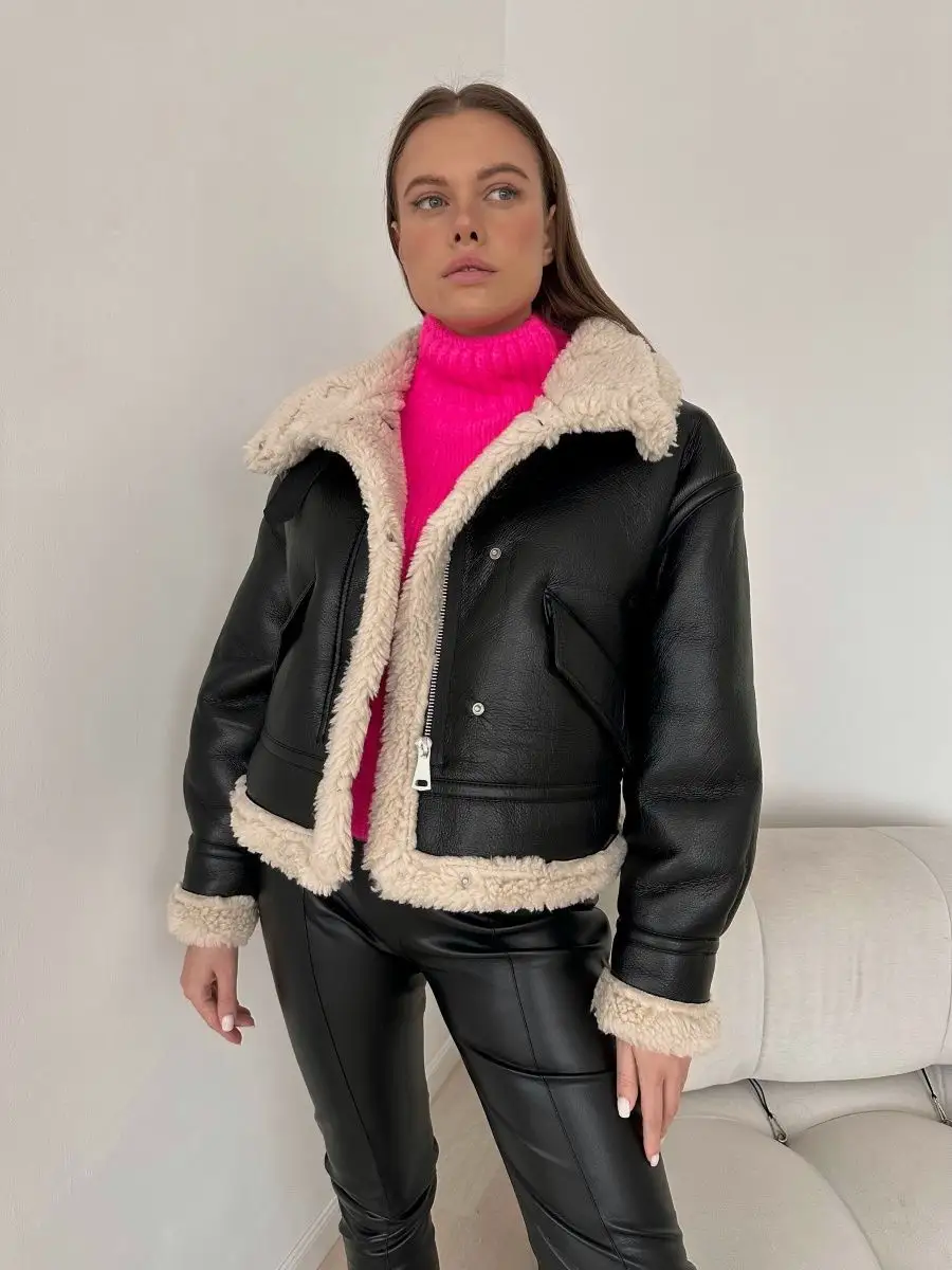Описание: Красивая и нарядная зимняя одежда для женщин изготовлена из мягкого искусственного меха, премиальной эко кожи и качественной фурнитуры. После покупки зимний женский полушубок из овчины рекомендуется встряхнуть и воспользоваться роликом для чистки одежды. Женская эко дубленка пилот доступна к заказу в популярных размерах, топовых расцветках и современных фасонах. Скошенная молния, актуальные оттенки и длина до середины бедра делает дубленку абсолютным хитом. Женская дубленка-косуха из замши на зиму вещь вне времени, которая остается трендом не один десяток лет. Универсальная модель куртки гармонично смотрится на хрупких девушках, идеальна для полных дам и подходит одежжа для высоких женщин, а также популярна как верхяя одежда для беременных на осень. Женская не натуральная зимняя куртка-дубленка авиатор с искусственным белым мехом под овчину гораздо более практична и нетребовательна в уходе по сравнению с аналогичными изделиями из натурального меха. К примеру, длинная женская зимняя дубленка авиатор натуральная с капюшоном нуждается в ежедневном уходе и бережном хранении не только в период активного использования, но и в не сезон. Летом зимние женские полушубки из овчины и искуственного меха прекрасно отдыхают на плечиках в шкафу, при желании используйте чехол для хранения – авиатор дождется следующего модного сезона, без риска быть съеденным молью. Отсутствие проблемы появления вредителей – явное преимущество, которым обладает модная короткая женская шубка тедди! Изделия из экокожи, в том числе зимняя женская дублёнка с экомехом, не требуют постоянной заботы или особенного ухода. В случае загрязнения поверхность достаточно протереть влажной губкой, а если дебленка намокла, она легко высохнет на вешалке. Дополнительный плюс, который имеет не натуральная короткая женская дубленка авиатор больших размеров на зиму – это небольшой вес. Как правило, длинная женская дубленка тедди из Турции на зиму или похожая удлиненная натрульная женская дубленка чебурашка демисезонная или для зимы достаточно тяжелые, такая одежда сложно пропускает воздух, блокируется теплообмен и тело потеет, что недопустимо в холодное время года. Короткая зимняя женская шуба тедди из эко-меха, изготовленная из высокотехнологичного материала, сохраняющего тепло, выгодно отличается экологичностью, этичностью по отношению к животным и не содержит опасных для здоровья компонентов. Широкий температурный диапазон позволит с комфортом носить зимний бушлат женский в период межсезонья, осенью и зимой. Порадует и долгий срок службы изделия: женская кожанка с мехом норки, песца или белки недолго сохраняет презентабельный вид, в то время, как наш авиатор имеет неограниченный срок годности. Соблюдая несложные правила и рекомендации по уходу – искуственная женская дубленка из экокожи позволит из года в год создавать стильный женский образ для девушки. Современная женская дулёнка отлично сочетается с большинством базовых вещей, нарядной или офисной одеждой. Практичные эко шубы на зиму можно сочетать с любимыми джинсами или брюками, лосинами или спортивными штанами. Подойдет длинная денская дублёнка девушкам, предпочитающим качественный трикотаж в повседневной жизни - женский тулуп прекрасно смотрится с облегающими платьями из всех 