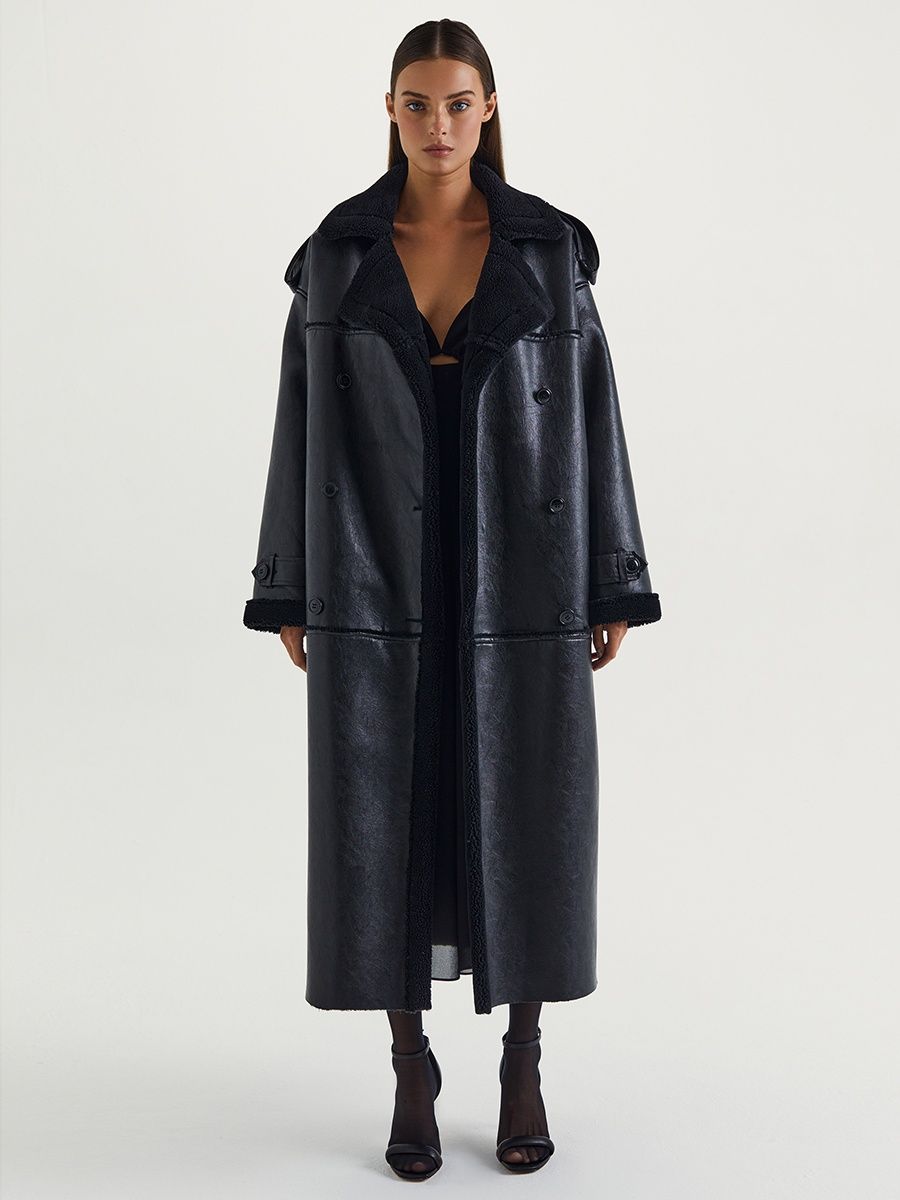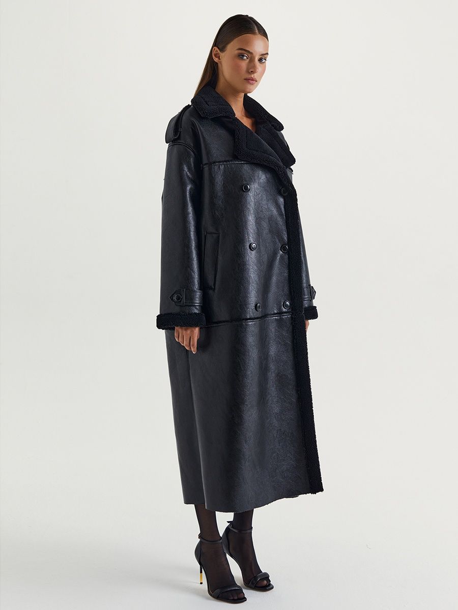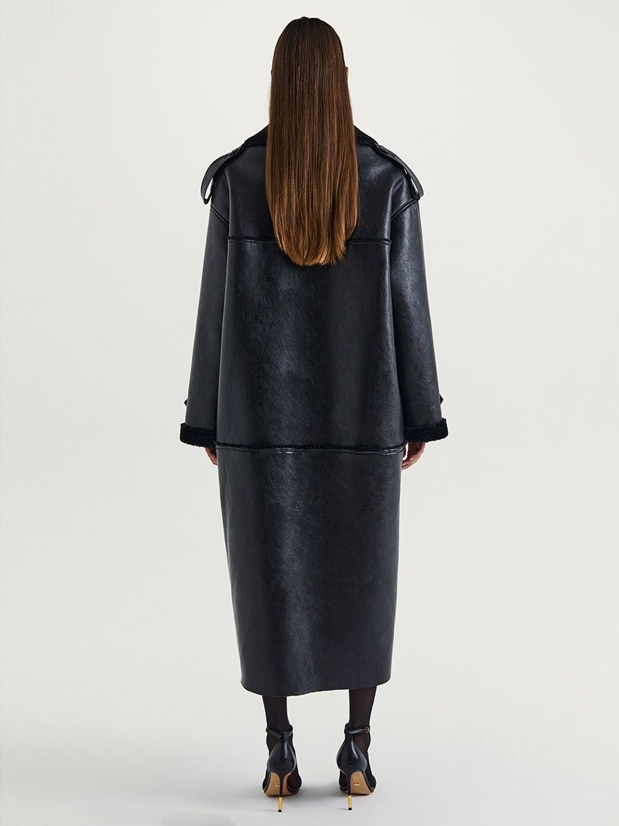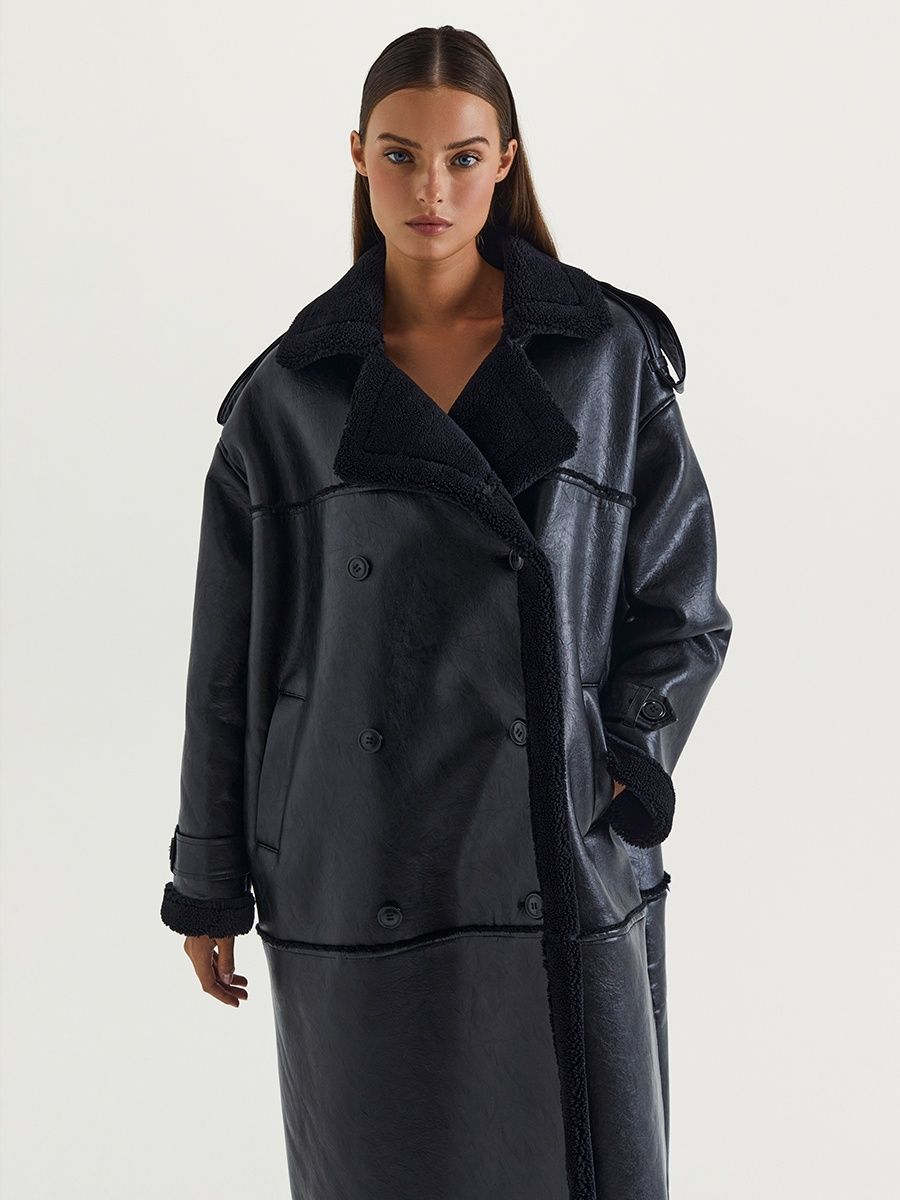 Описание: Дубленка длинная оверсайз из экокожи