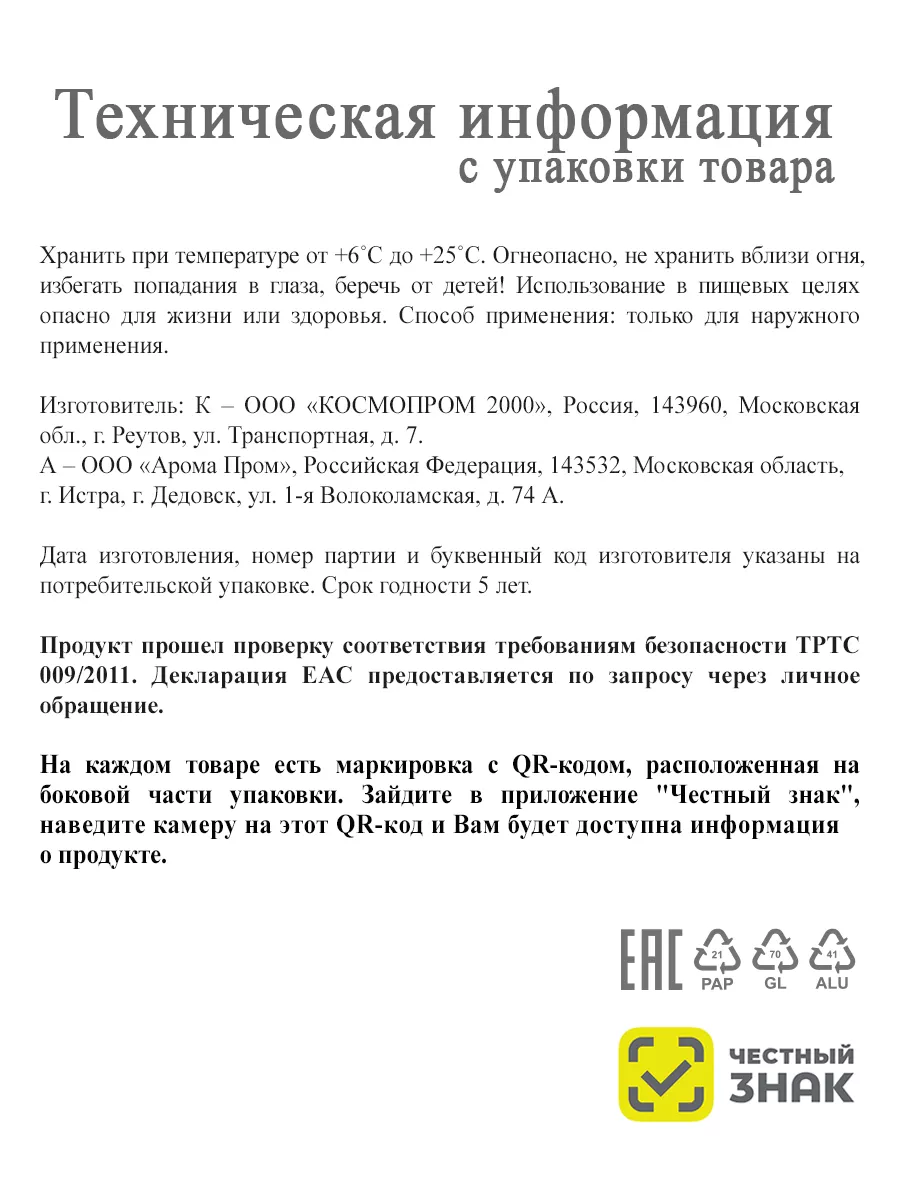 Артикул 111113655 Состав ALCOHOL DENAT; AQUA(WATER); PARFUM(FRAGRANCE); BENZYL ALCOHOL; BENZYLBENZOATA; BENZYLSALICYLATE; CINNAMYLALCOHOL; CITRAL; CITRONELLOL; COUMARIN; GERANIOL; HEXYLCINNAMAL; HYDROXYCITRONELLAL; LIMONENE; LINALOOL; CI 19140; CI 17200; CI 16255