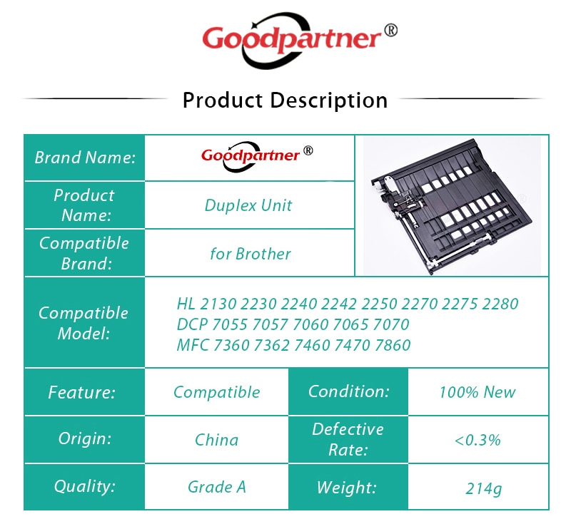 Дуплексный блок подачи пикапа для BROTHER HL 2260 2560 DCP 7080 7180 MFC 7380 7480 7880 L2340 L2360 L2361 L2366 L2500 L2520
