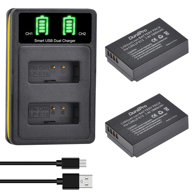 DuraPro 1800 мАч LP-E12 Bateria LPE12 LP E12 Аккумулятор AKKU + зарядное устройство для Canon M 100D Kiss X7 Rebel SL1 EOS M10 EOS M50 Запчасти для цифровой зеркальной камеры