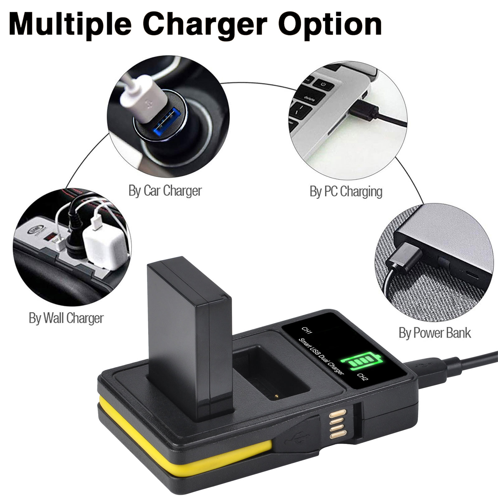 2. Заряжайте две батареи одновременно и независимо.