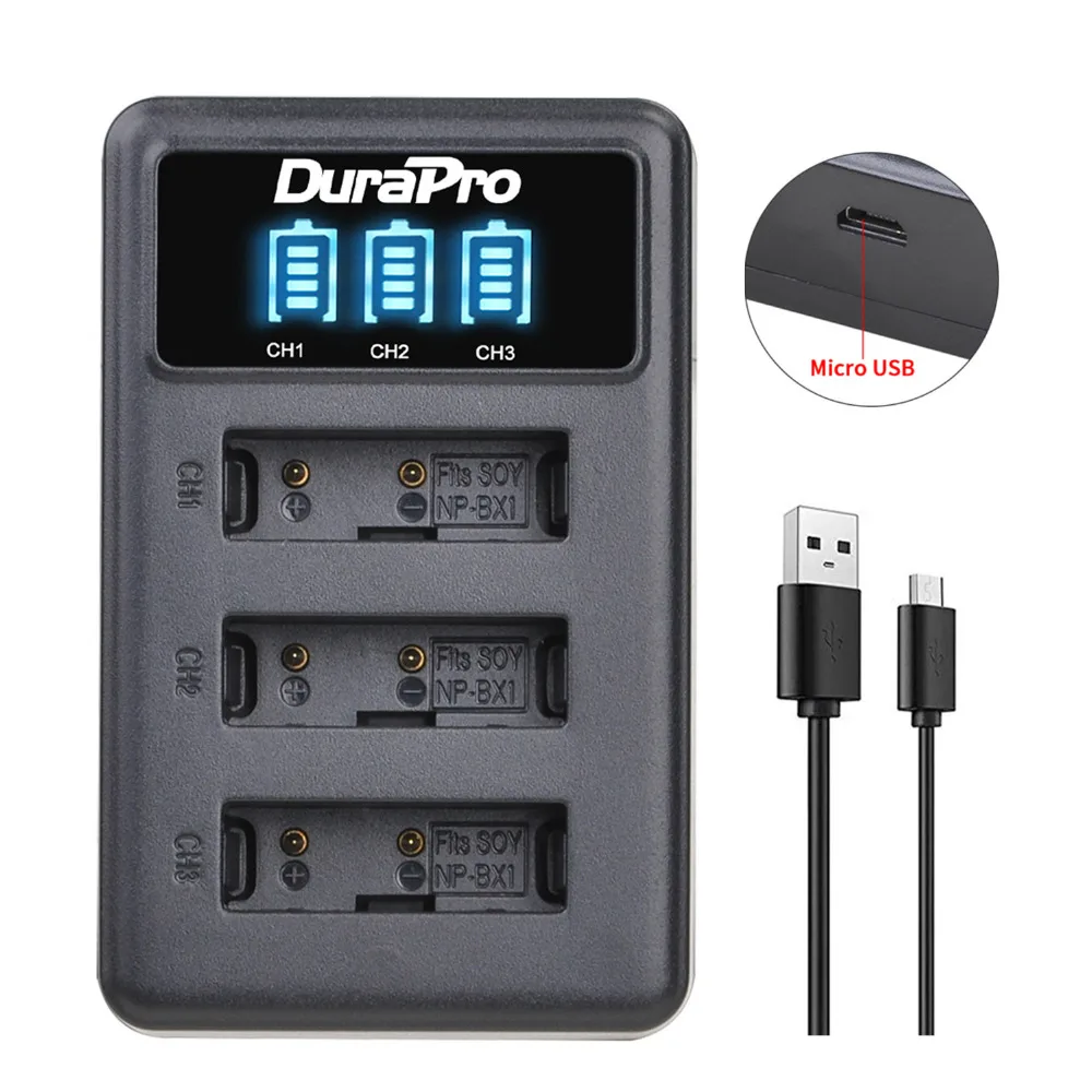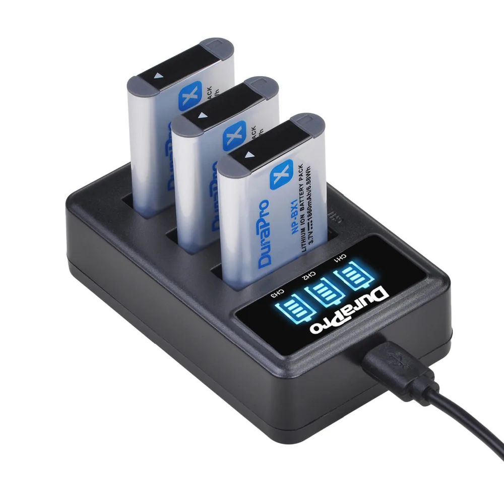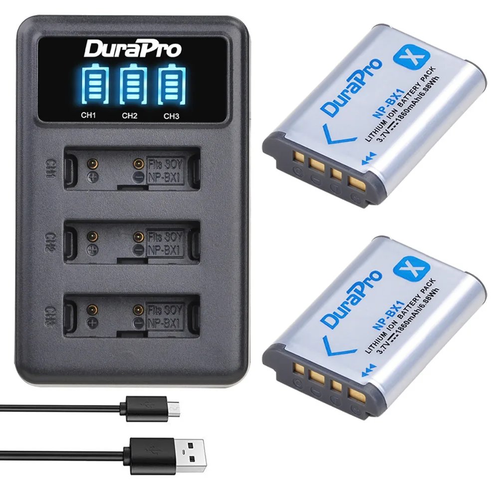 DuraPro 1860 мАч NP-BX1 NP BX1 NPBX1 батарея + светодиодный 3 слота зарядное устройство для Sony FDR x3000 HDR as300 DSC rx100 iii zv-1 DSC RX1 RX100iii