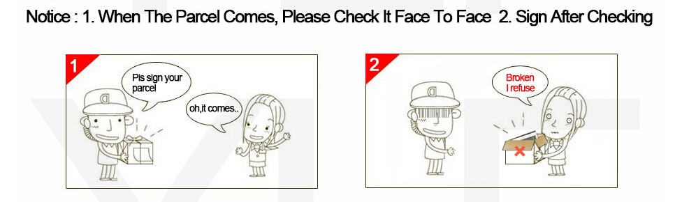 1. Когда почтальон доставит Вам товары, пожалуйста, внимательно проверьте, если он поврежден, пожалуйста, откажитесь, если он поврежден искусственно, мы не примем возврат или замену.