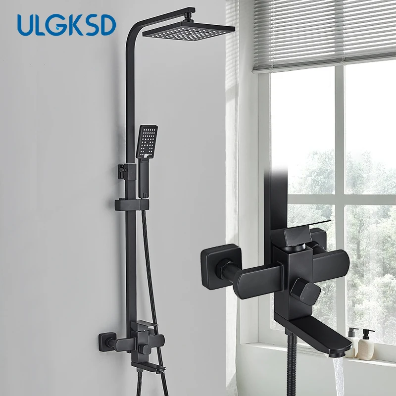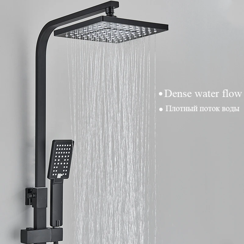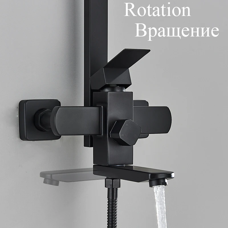 Набор душевых систем для ванной комнаты Черные смесители для душа Вращение на 360 ° Латунные Смесители для ванны Стойка без осадков Смеситель для ванной