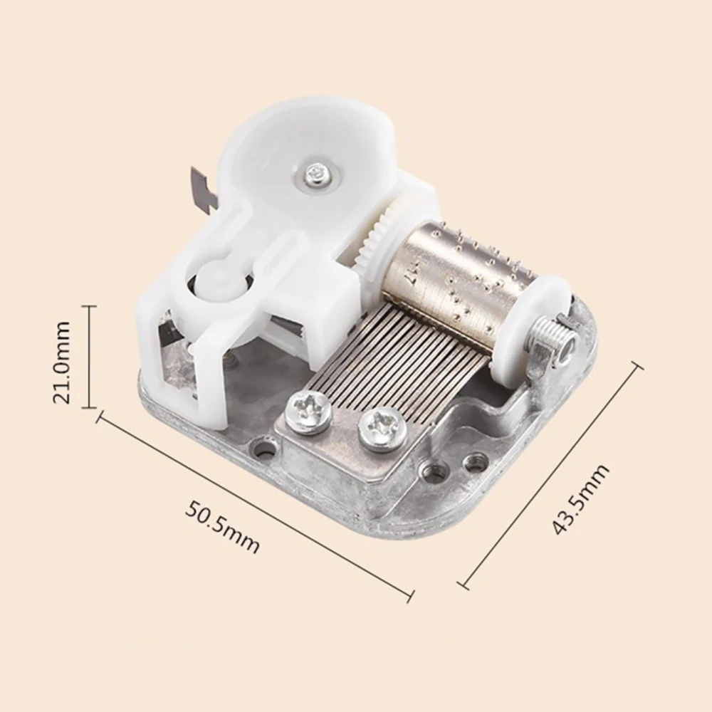Механизм музыкальной шкатулки небольшой по размеру, всего 50,5 мм x 43,5 мм x 21 мм, вы можете держать его в руке или положить в сумку, он очень подходит.