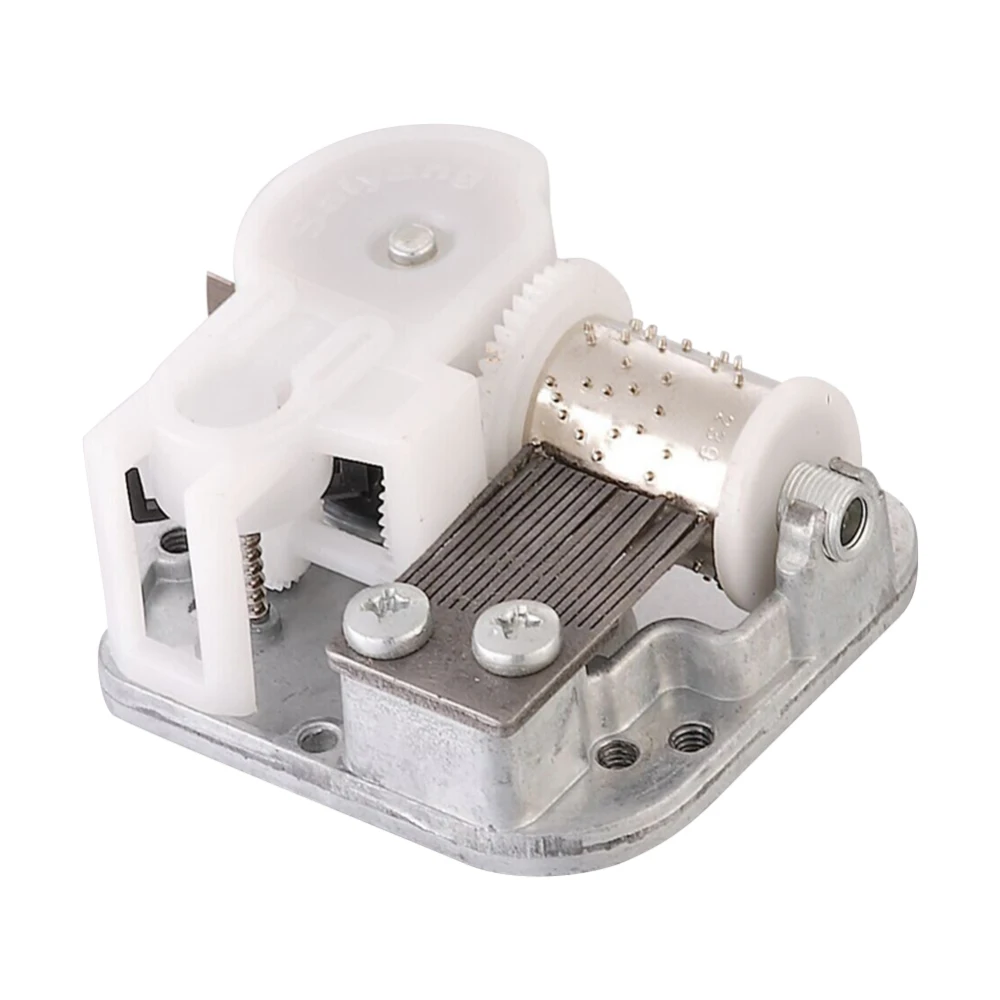 Движение музыкальной шкатулки использует главную пружину в качестве источника питания и заставляет звуковой цилиндр вращаться через передачу с регулируемой скоростью зубчатой передачи.