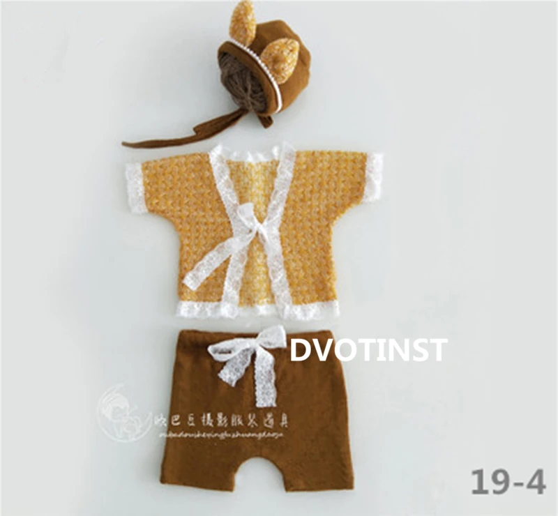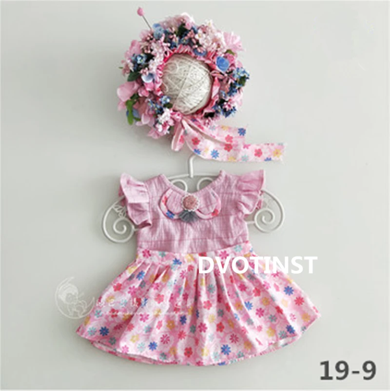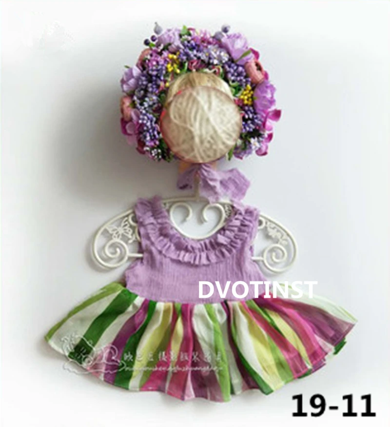 DVOTINST Новорожденный ребенок Фотография реквизит вязаный цветочный головной убор + наряды платье комплект 2 шт. фотография Аксессуары для студийной съемки фото реквизит