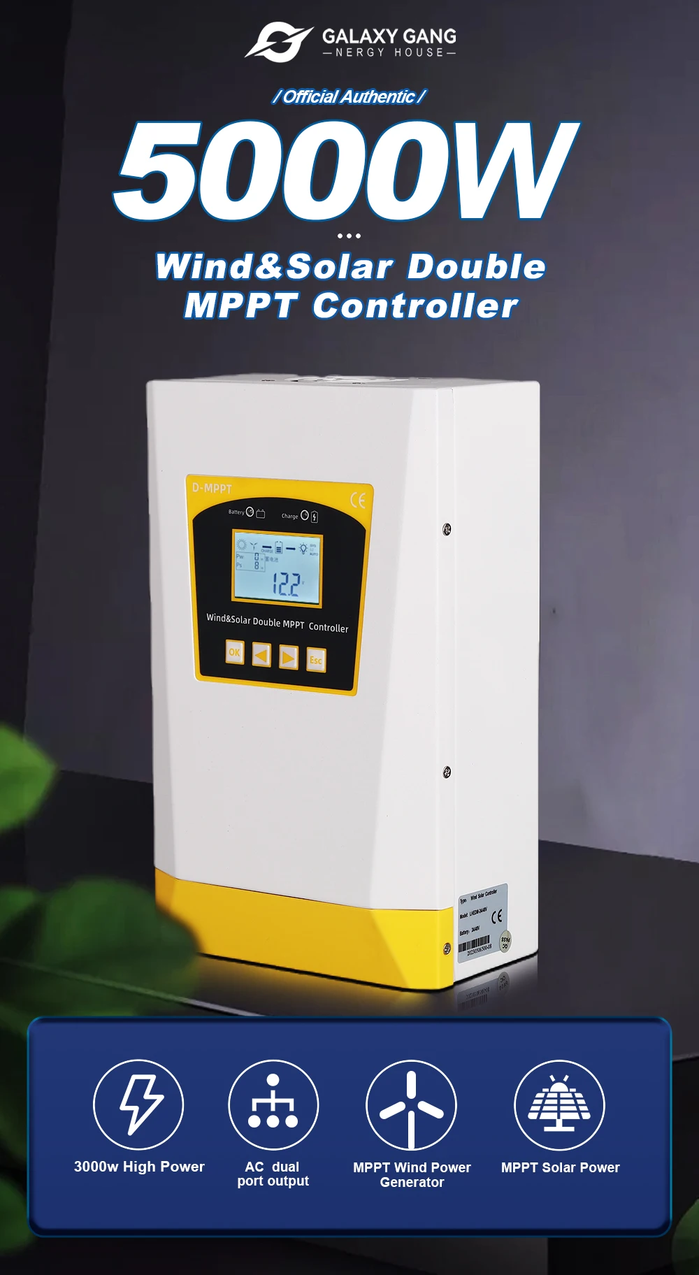 Двойной MPPT энергия ветра гибридная система зарядки Солнечный контроллер 5000 Вт 12 В 24 В и 24 В 48 В автоматический регулятор домашнего использования ветряная мельница генератор