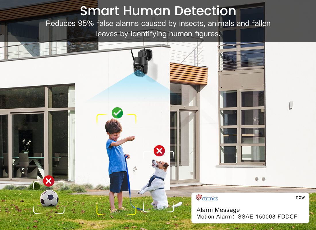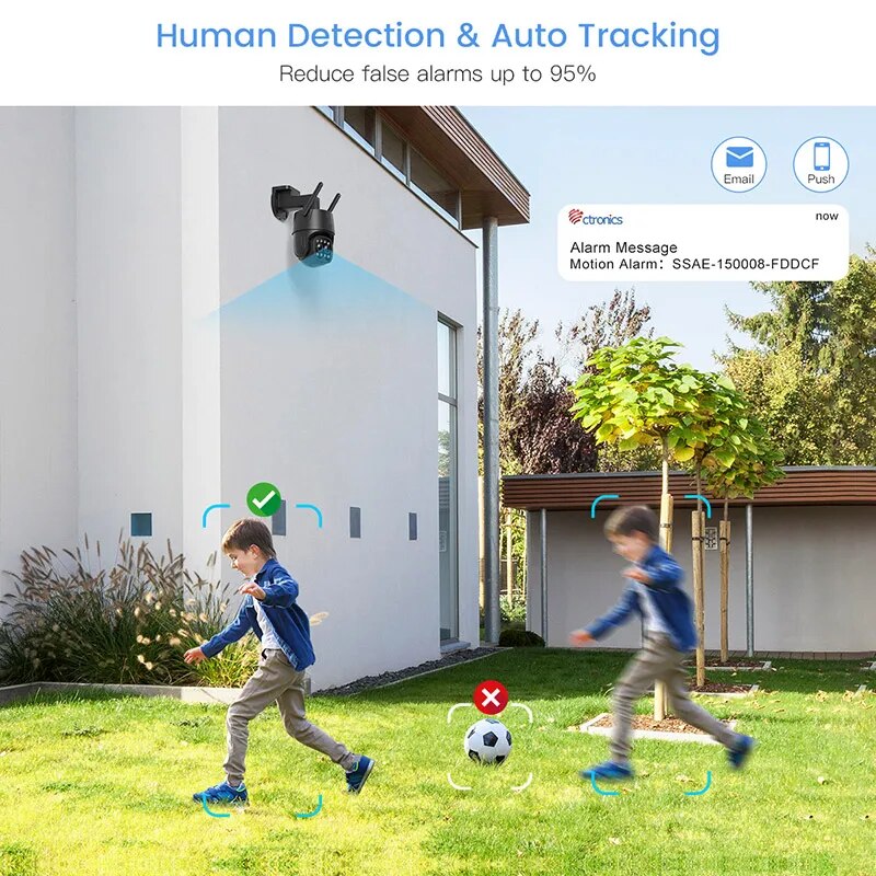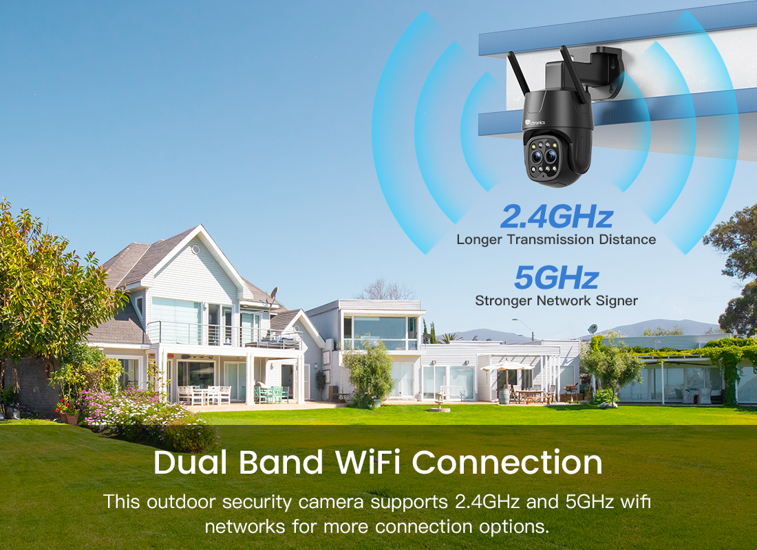 По сравнению с беспроводным WIFI, который может подключаться только к 2,4G, двухдиапазонная технология передачи Wi-Fi может поддерживать автоматическую идентификацию и подключение сигналов 2,4G и 5G, которые могут хорошо адаптироваться к потребностям беспроводных сетей в различных средах. В то же время камера Ctronics 2K также имеет собственную точку доступа, которую можно подключить к сети мобильного телефона для мониторинга в реальном времени без Wi-Fi.