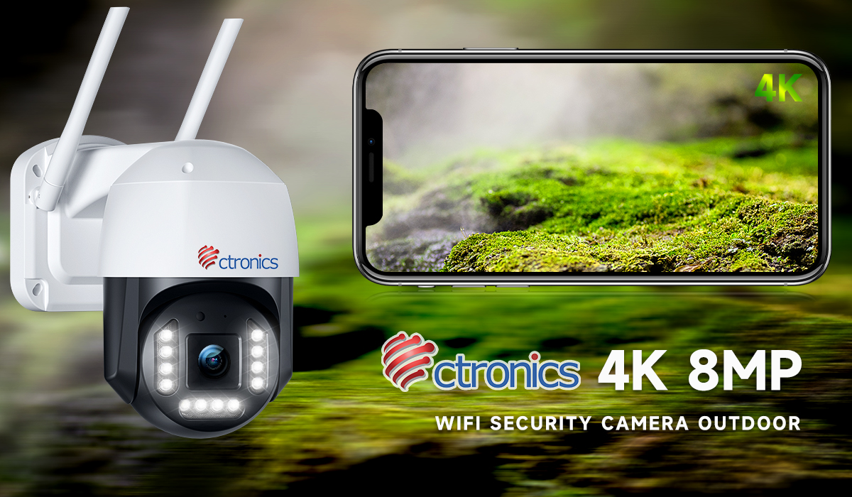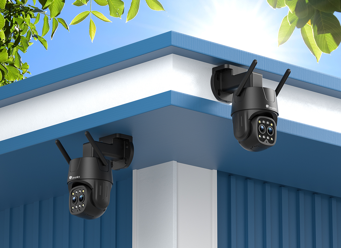 Эта камера наружного видеонаблюдения Ctronics оснащена двумя объективами, каждый из которых имеет разрешение 4 мегапикселя.