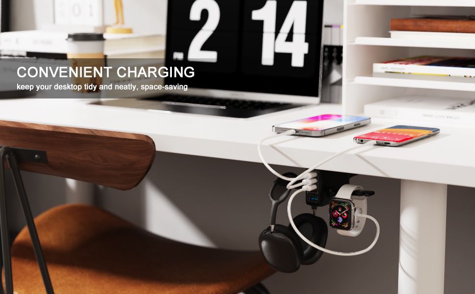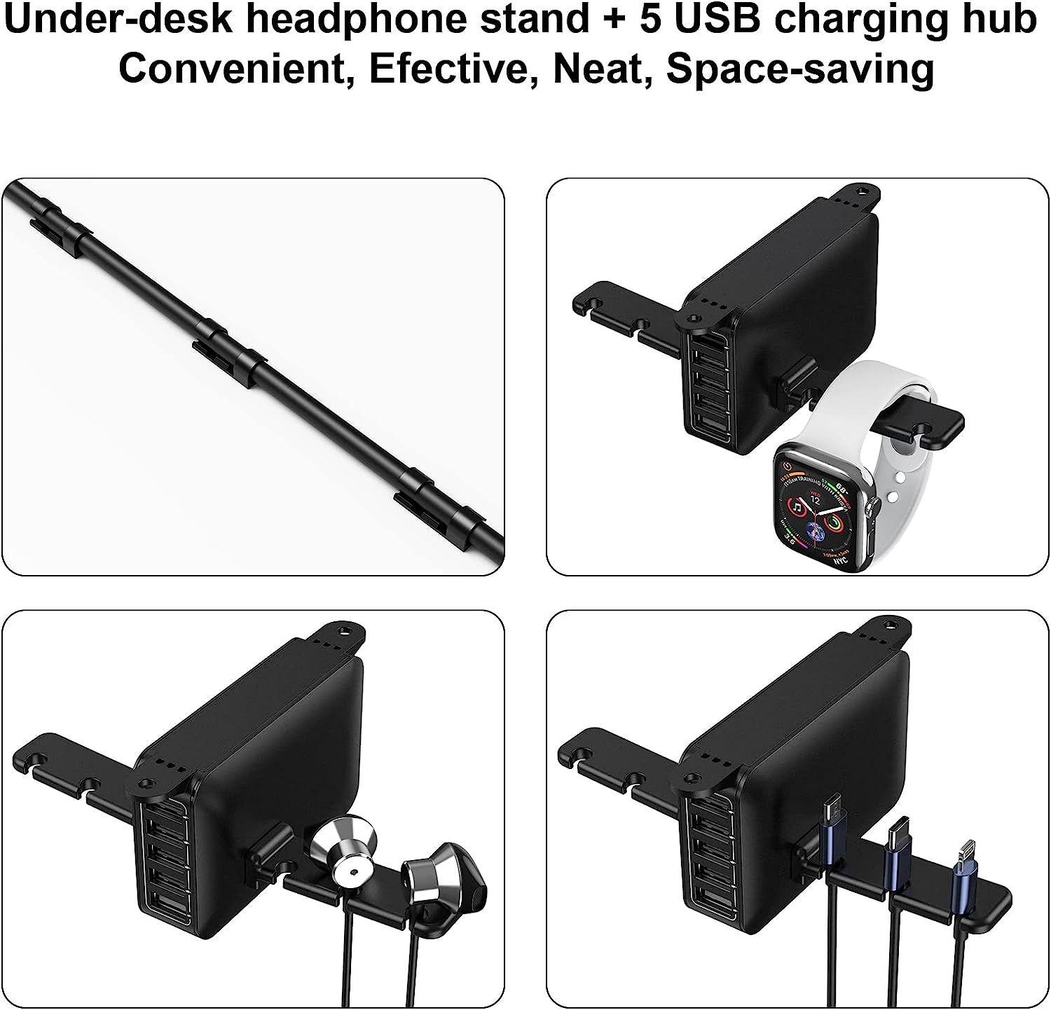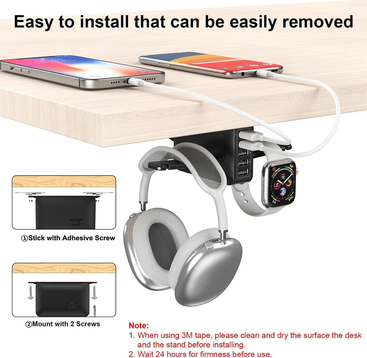 Двойная Подставка Для Наушников Под Столом С 5-портовой USB-зарядной Станцией, Аксессуары Для Наушников Для Геймеров, В Подарок Парню, Мужу
