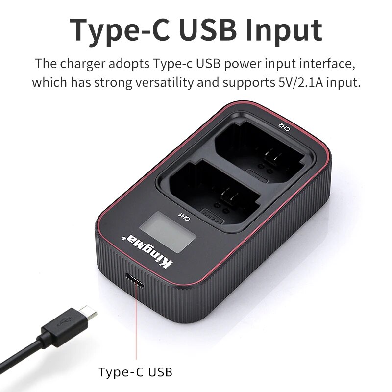• Зарядное устройство может заряжать один аккумулятор, а также пару, поставляется с usb-кабелем Type-c