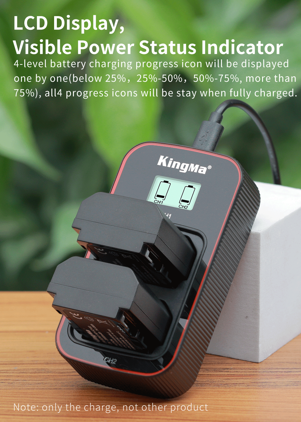 • Двойное зарядное устройство с ЖК-дисплеем позволяет пользователям легко проверять состояние питания.
