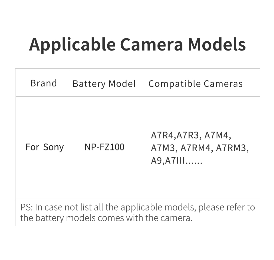 <span class="SnowProductCharacteristics_SnowProductCharacteristicsItem__titleContent__534v9">Suitable</span> For Sony NP-FZ100 Battery