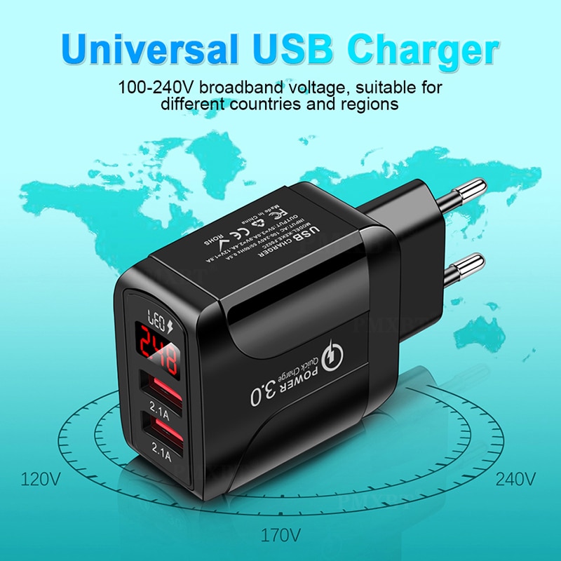 Двойное зарядное устройство USB, ЕС, США, Великобритания, вилка QC3.0