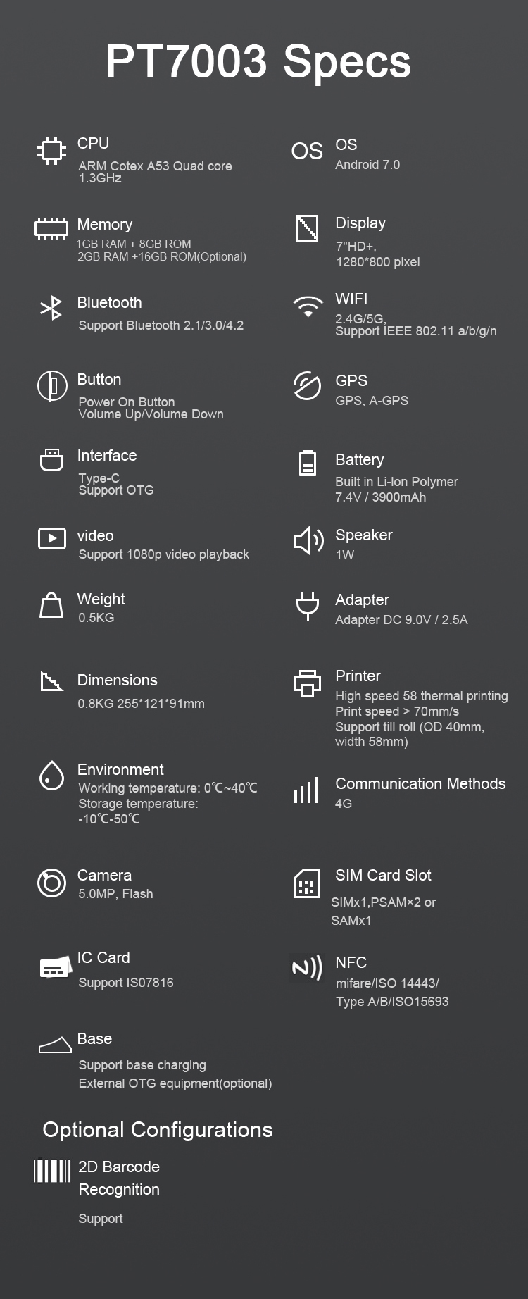 Display 7.0 IPS TFT LCD,HD 800X1280 Pixel