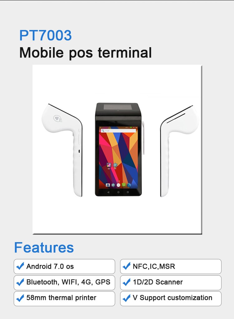 Двойной экран все в одном Android pos-терминал со встроенным 58 мм термальным принтером/MSR/считывателем