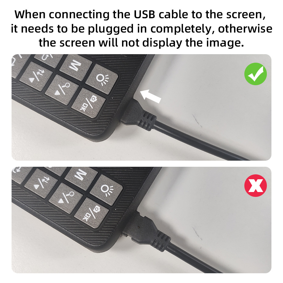 При подключении USB-кабеля к экрану его необходимо полностью подключить, иначе на экране не будет отображаться изображение.