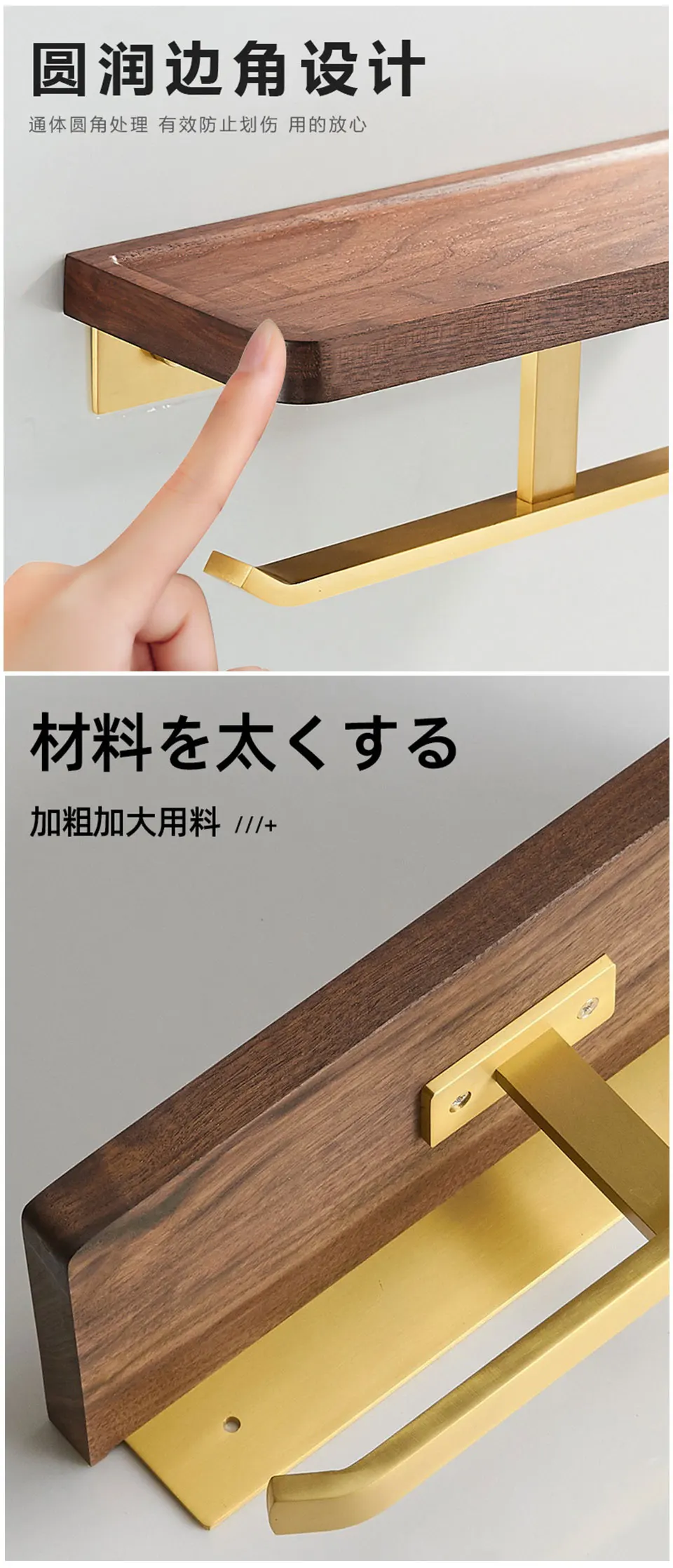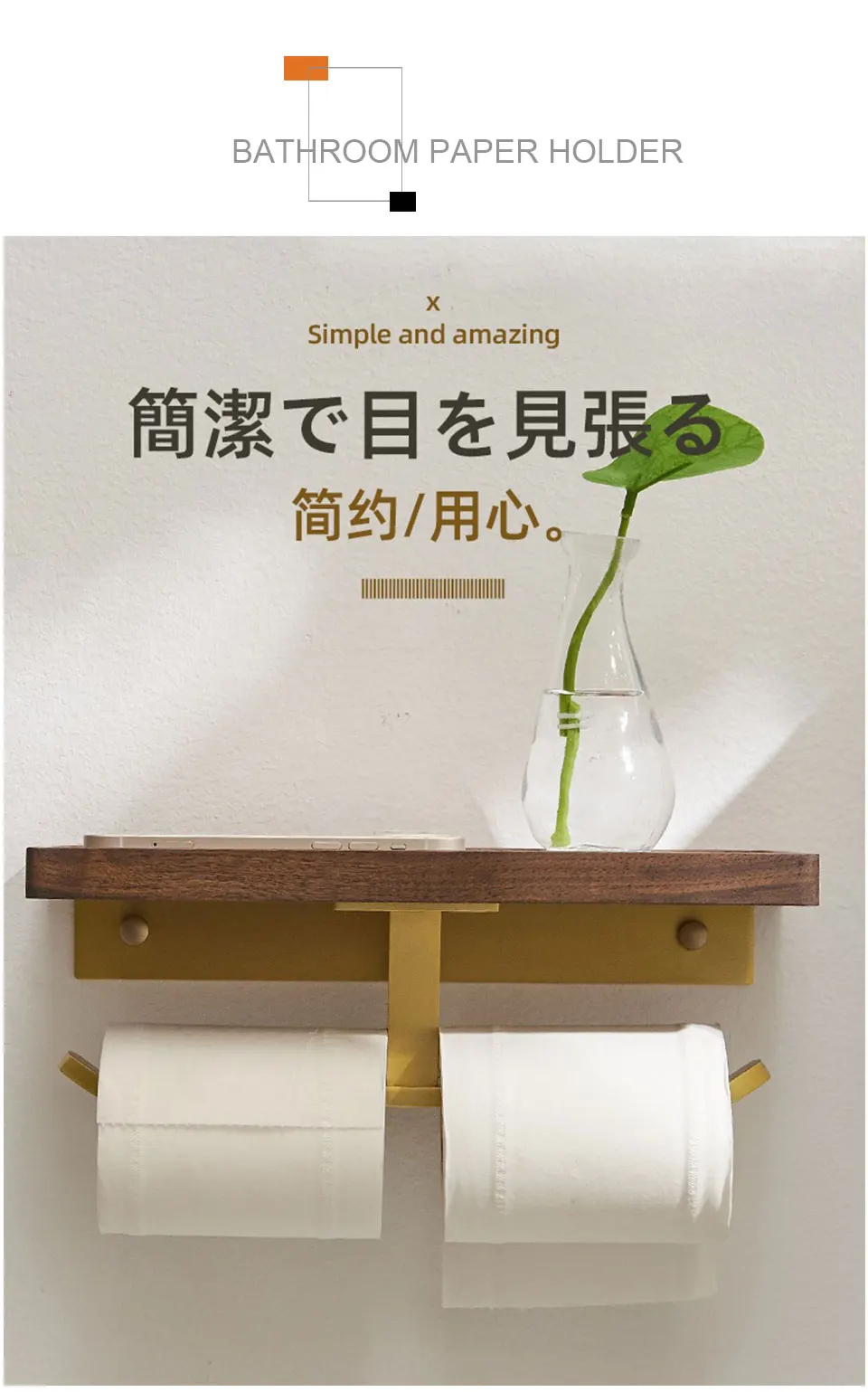 Двойной настенный держатель для туалетной бумаги с полкой из твердой древесины