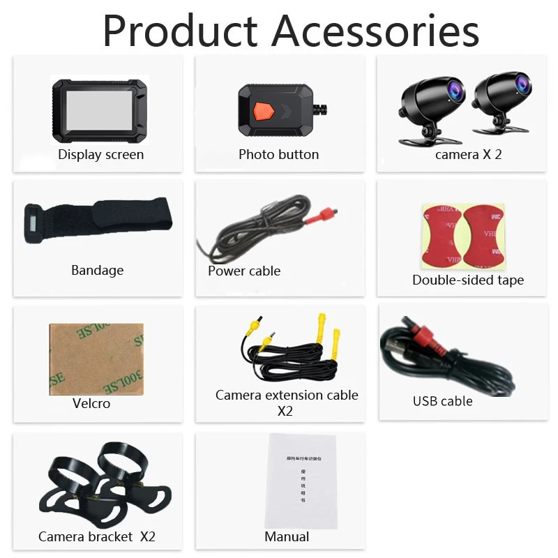 1080p в байкерском стиле из водонепроницаемого материала в камера dvr Dash camЧерный контейнер под элемент питания 2 каналов