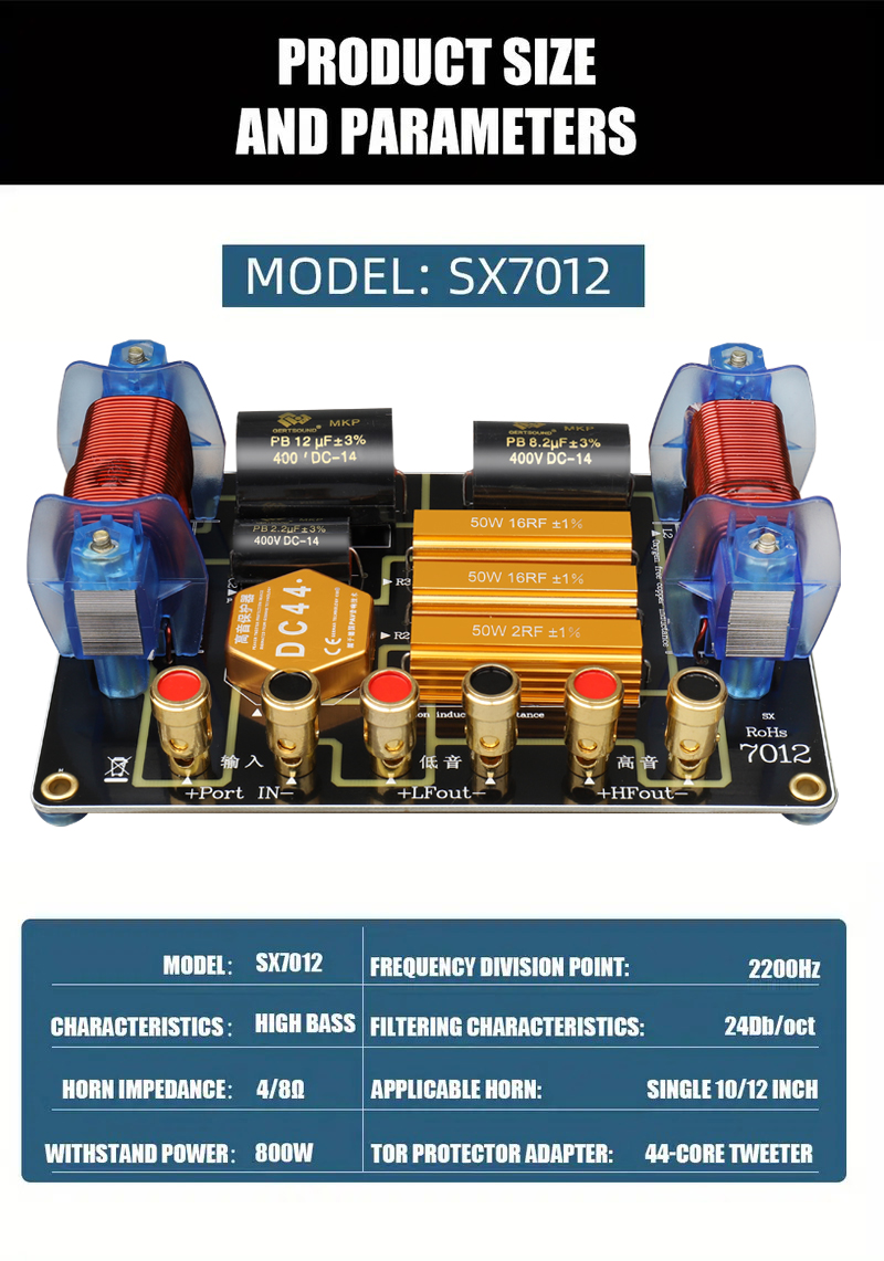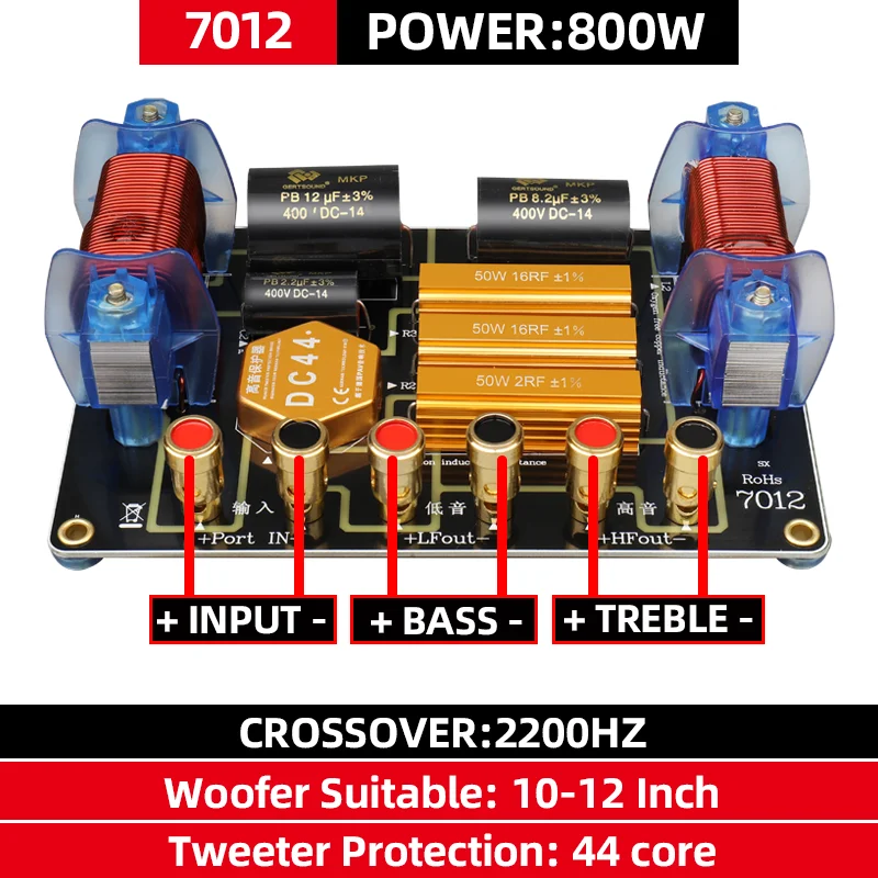 Двухблочный делитель частоты 800 Вт, один, 10, один, 12 дюймов, один, высокий и один, низкий фильтр для динамика, перекрестный, 2200 Гц. Сценический производительный динамик