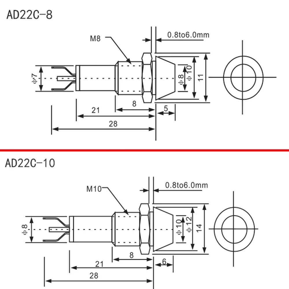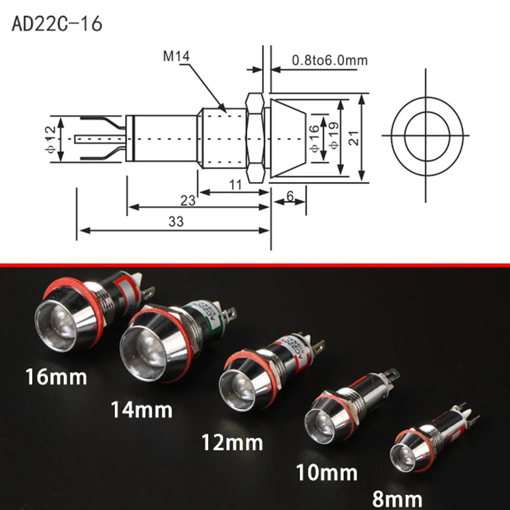 Двухцветный металлический индикаторный светильник, сигнальная лампа с проводом, светодиодный, водонепроницаемый, зеленый, красный, 3 в, 6 в, 12 В, 24 В, 110 В, 220 В, 8 мм, 10 мм, 12 мм, 14 мм, 16 мм