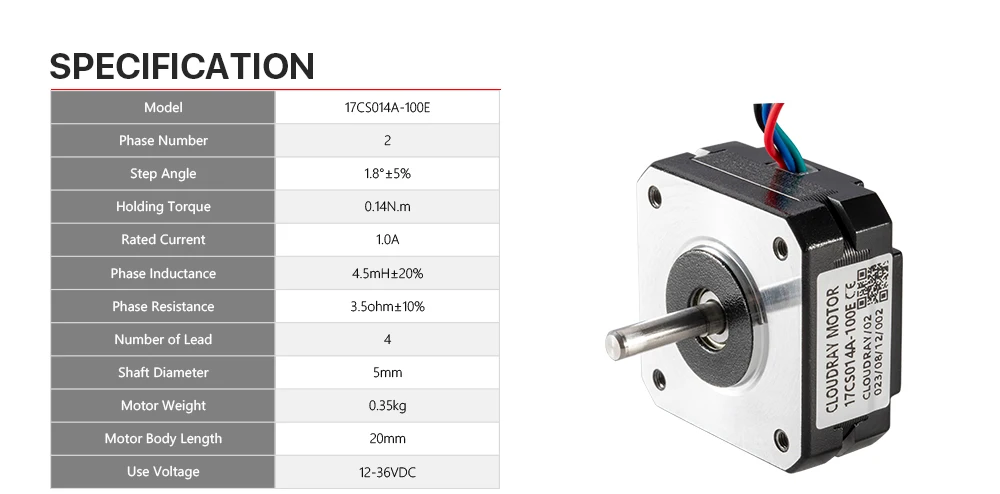 Двухфазный шаговый двигатель с открытым контуром Cloudray Nema 17, 20 мм, 0,4 Нм, 2,0 А