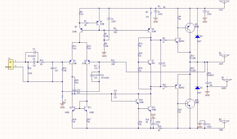 Меньшие искажения, лучший контроль и Разрешающая способность. Одиночный дифференциальный вход, несимметричный каскад усилителя напряжения, трехступенчатый перевернутый выход Дарлингтона.
