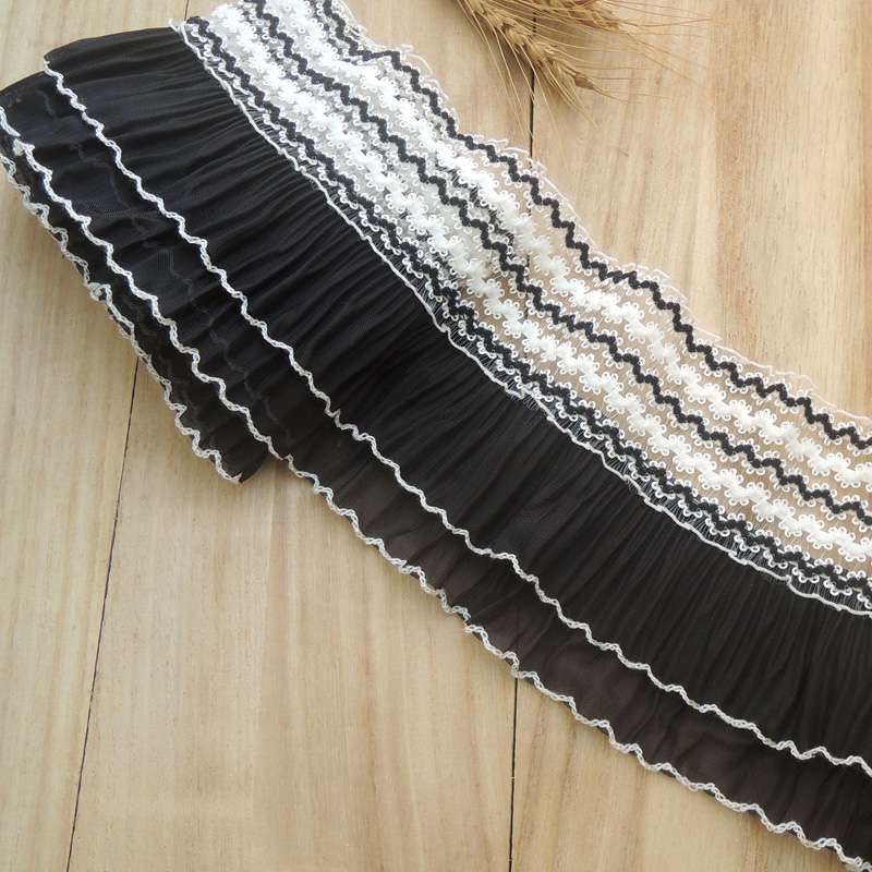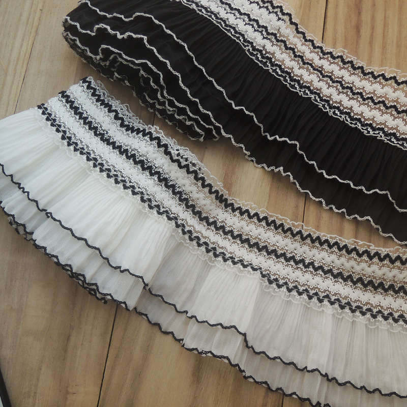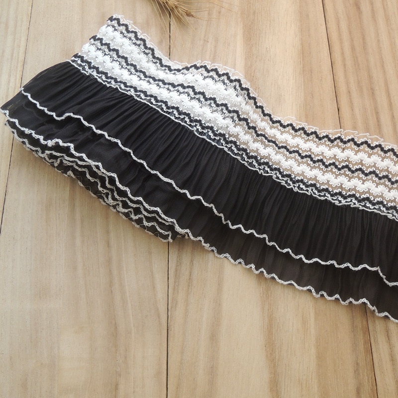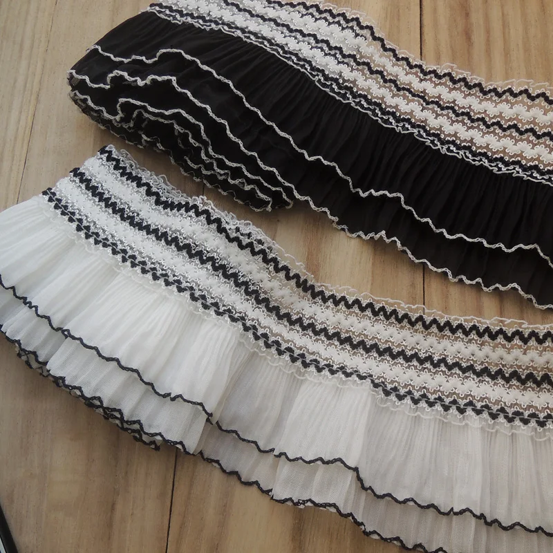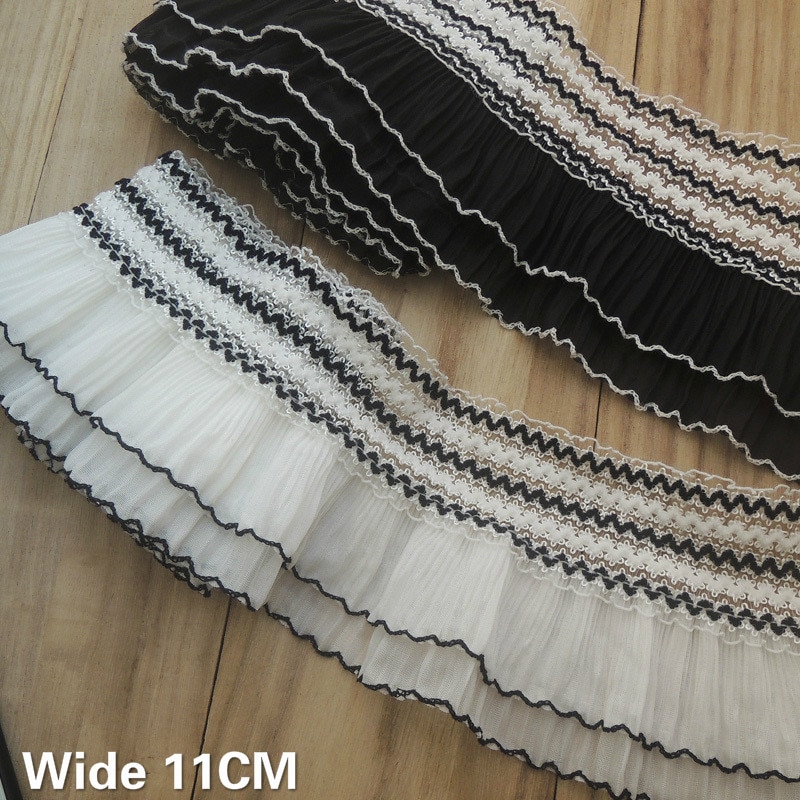 Двухслойная плиссированная шифоновая ткань с 3D вышивкой, воротник с бахромой и манжетами, Эластичная отделка с оборками, швейные принадлежности «сделай сам», 11 см в ширину
